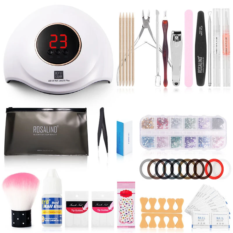 Лампа для ногтей 48 Вт * 1Гель для ногтей * 10Салфетки для снятия гель-лака * 20Кусачки для ногтей * 1Пинцет * 1Коробка для стразов * 1Клей для ногтей * 1Наклейка * 1Деревянная палочка * 5Французская наклейка на кончик пальца * 2Лента паука * 10Омертвевшая кожа * 1Ножницы для мертвой кожи * 1Вилка для мертвой кожи * 1Инструмент для удаления ногтей * 1Смягчитель омертвевшей кожи * 1Питательный раствор * 1Разделитель для пальцев ног * 2Сумка для хранения * 1Щетка для пыли * 1Шлифовальная лента * 1Губчатая ПОЛОСКА * 1Многофункциональный полировальный блок * 1