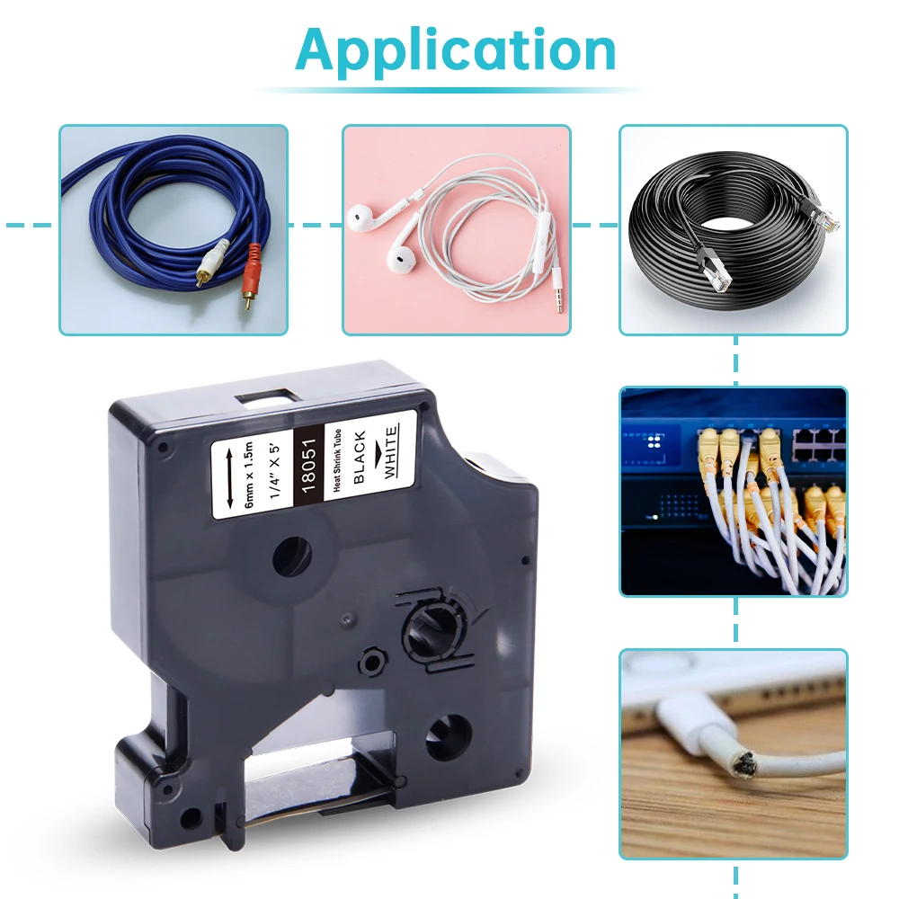 Термоусадочная трубка UniPlus 18051, совместимый с Dymo Rhino этикеток, 6 мм, черно-белая кабельная лента, 4200, 5200, 6000, 6500, производитель этикеток