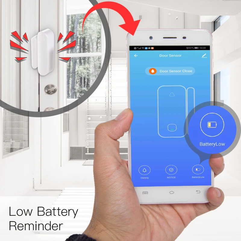 4. Широкое применение: примените умный датчик двери/окна для различных сцен, вашей спальни, гаража, ванной комнаты, сада и в любом месте, держите весь дом вдали от опасности с помощью сенсора смарт-двери/окна.