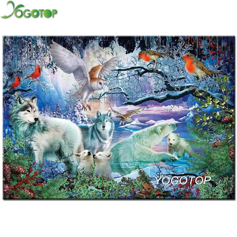 5d алмазная живопись квадратная круглая вышивка крестиком Diy Алмазная вышивка ледник животные волк медведь Сова мозаичный Декор YY2799