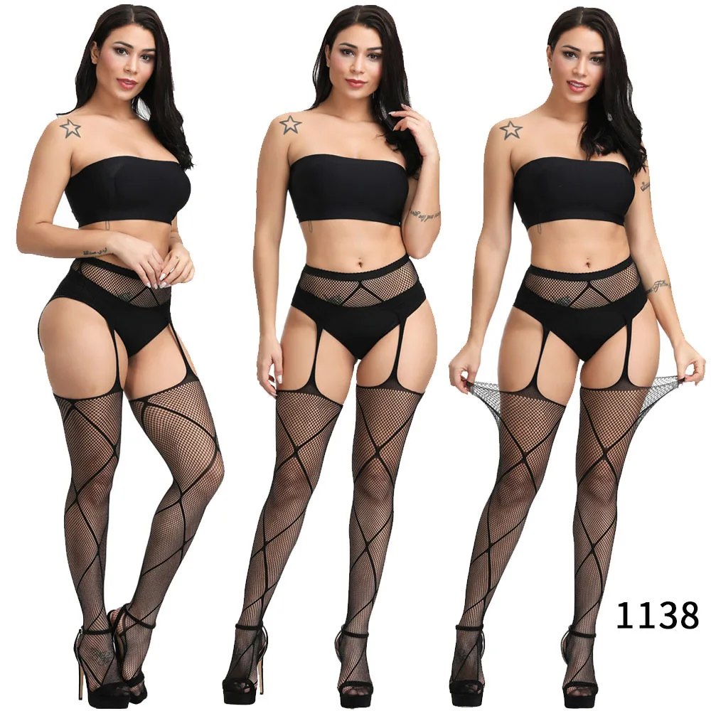 Женские сетчатые колготки с подвязками, прозрачные колготки до бедра, вышитые чулки, сексуальные чулки нижнее белье, W022, размера плюс