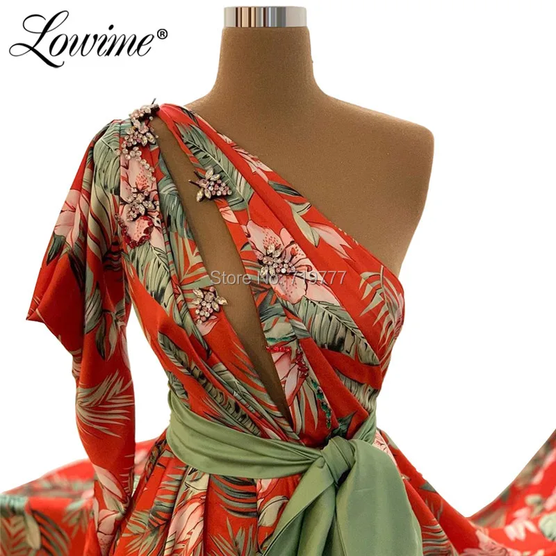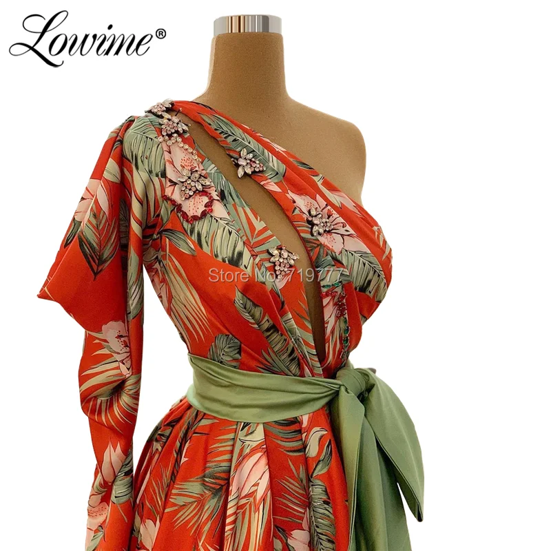 Длинные платья-трапеции с кристаллами на одно плечо для выпускного вечера, арабское вечернее платье с вырезом, 2020