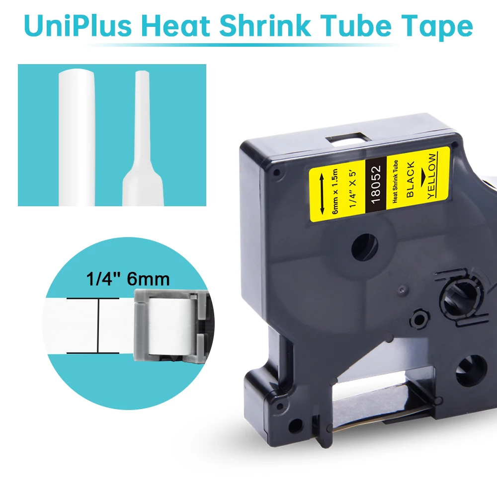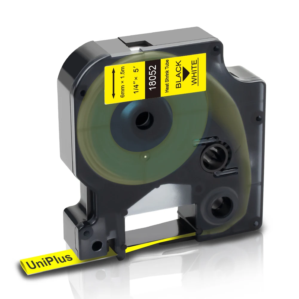 Термоусадочная трубка UniPlus 18052, совместимый с Dymo Rhino, лента для этикеток, 6 мм, черная на желтом, Промышленная лента для принтера для этикеток Rhino, 5200