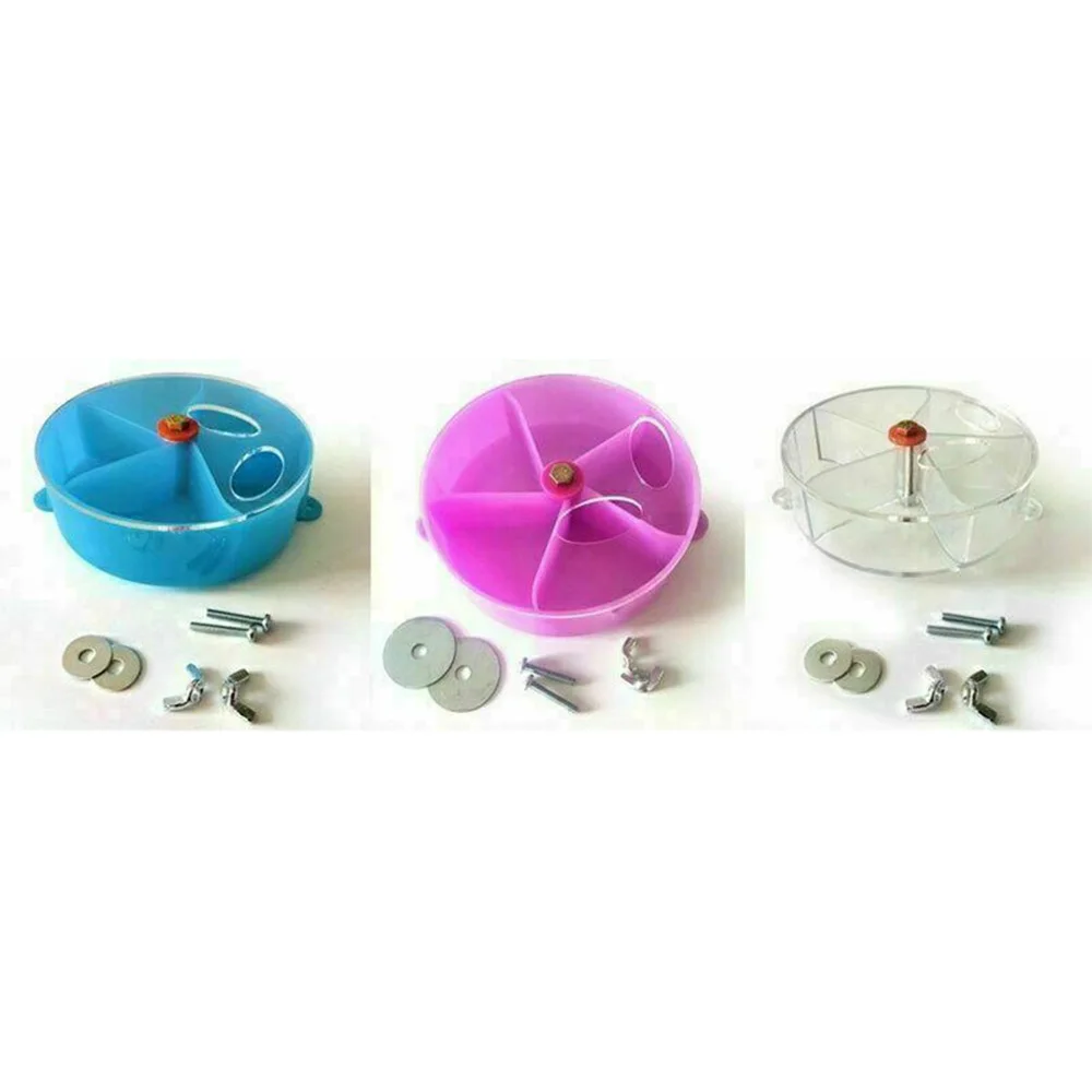 Птица еда для попугая коробка Цвет: прозрачный/синий/фиолетовый Материал: пластик Диаметр: 13 см Упаковка: 1 шт.