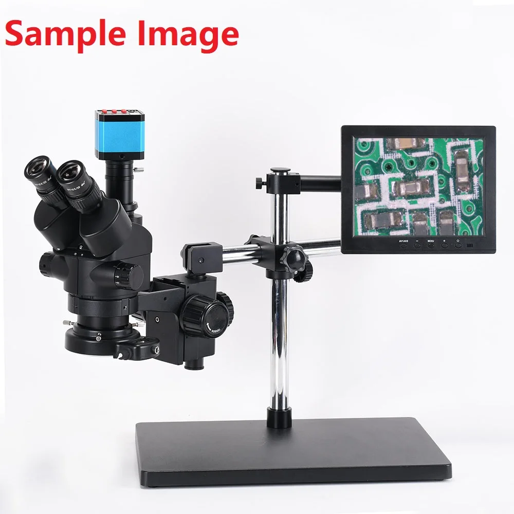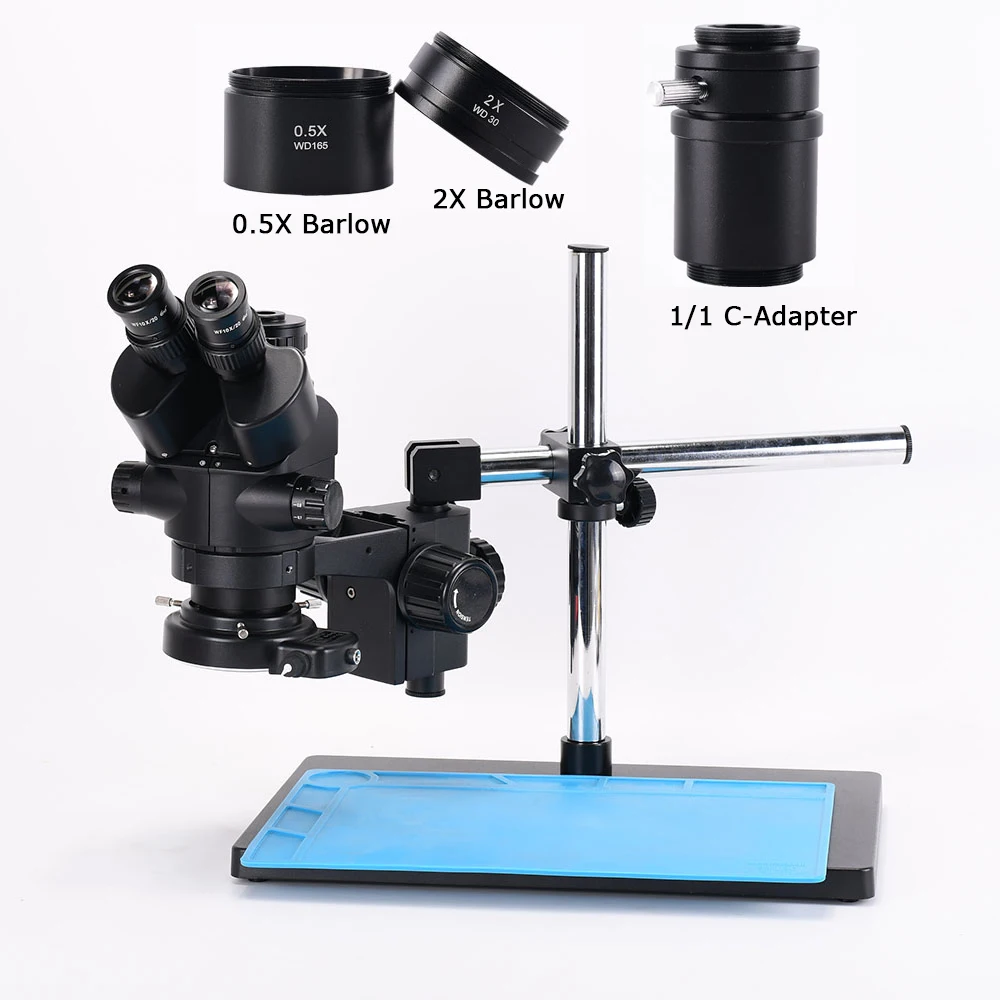 Тринокулярный микроскоп 7X-45X, промышленная лаборатория, мультифокальный стереомикроскоп + 144 светодиодных кольцесветильник + адаптер C для ремонта фотографий
