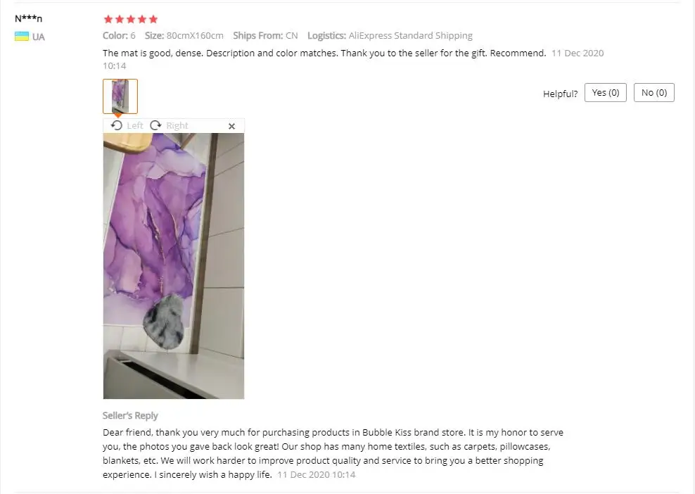 Только открыла посылку и сразу решила сделать отзыв. Заказала размер 100×160.Ковёр приехал в С-Пб за 20 дней. Продавец внимательный, быстро вышел на связь и ответил на все вопросы. Ковёр качественный, без запаха, прошит ровно. Посмотрим как будет вести себя покрытие со временем. В России КОВЁР-это что-то тяжелое, обязательно крупный ворс, шерсть в составе, этот ковёр другой. Он ЛЁГКИЙ, весит 1,5 кг, верхнее покрытие - плотная ткань. Я такой и хотела , чтобы быстро очищать. У меня дома собака и другие ковры быстро загрязнялись. Подойдёт также для занятий фитнесом дома. Я довольна, этого продавца советую! Спасибо)