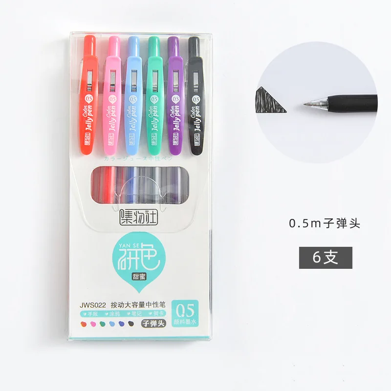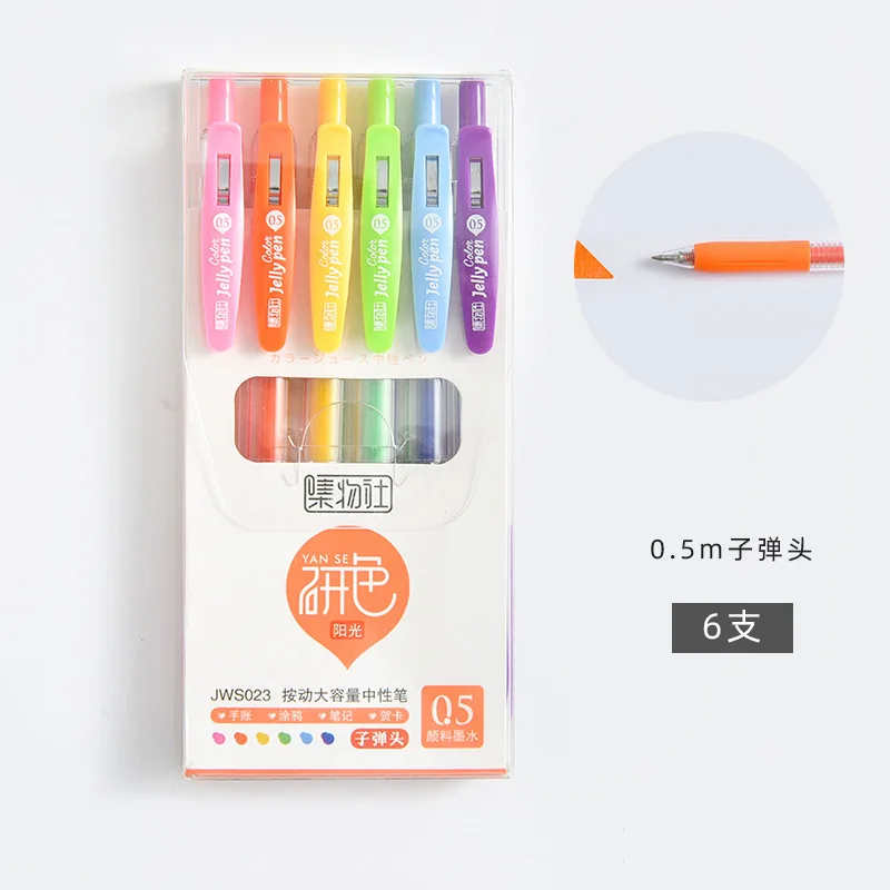 Набор гелевых ручек разных цветов 0,5 мм, 6 шт.компл., школьные канцелярские принадлежности, офисные аксессуары, подарки от Kevin sasa Crafts