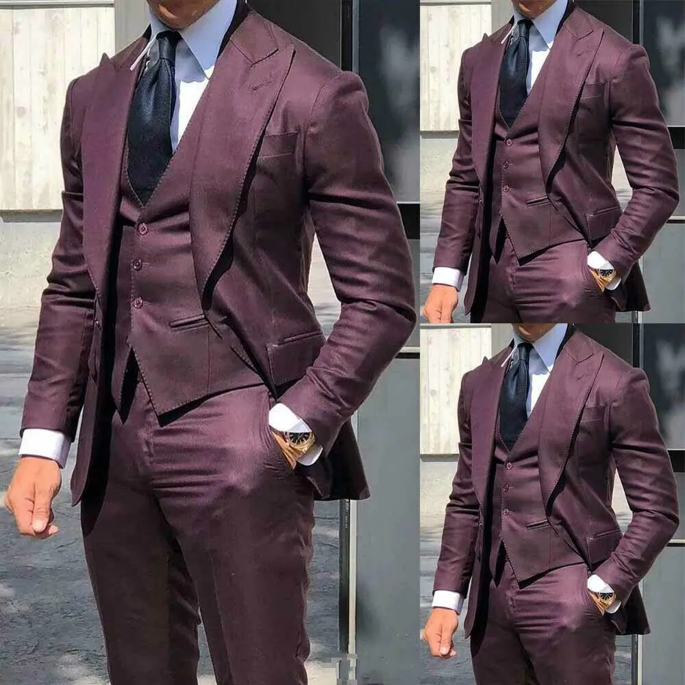 Новый свадебный смокинг, смокинг жениха с отворотом, Модный деловой ужин, 3 предмета (пиджак, брюки и жилет), костюмы для мужчин, Q115