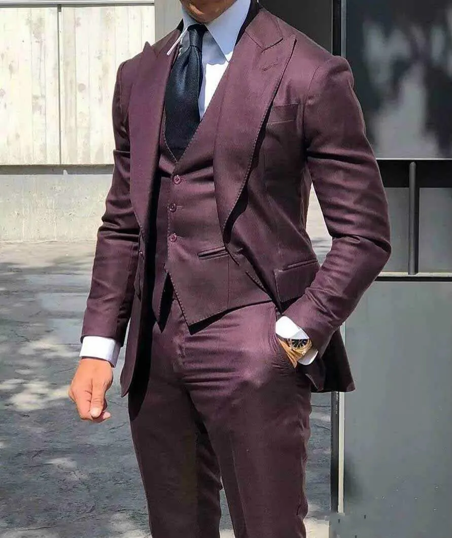 Мужской твидовый костюм, приталенный Свадебный костюм из 3 предмето...