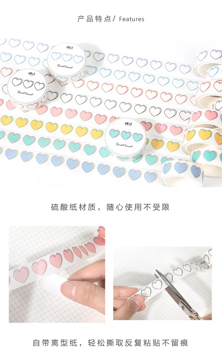 Клейкая лента в форме сердца для скрапбукинга, японская клейкая лента
