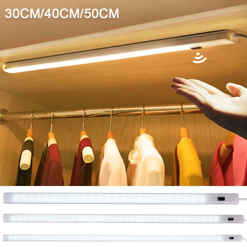 Ручное волнистое управление, Кухонные светильники, светодиодный светильник для шкафа-шкафа, светодиодный светильник 3050 см, датчик движения, ручная развертка, Кухонные светильники