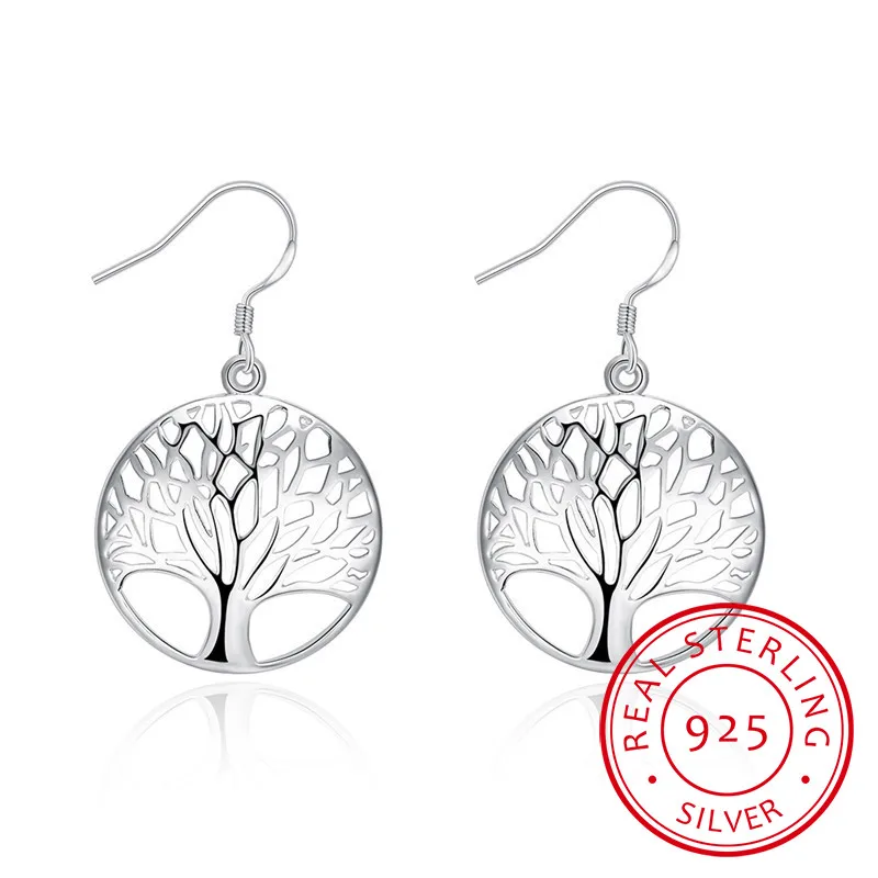 Женские серьги с деревом жизни, круглые серьги с вырезами, 925