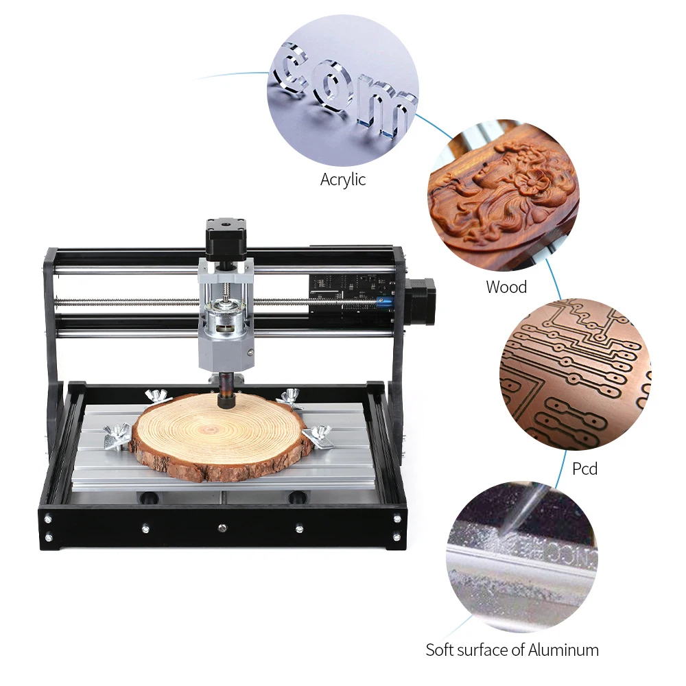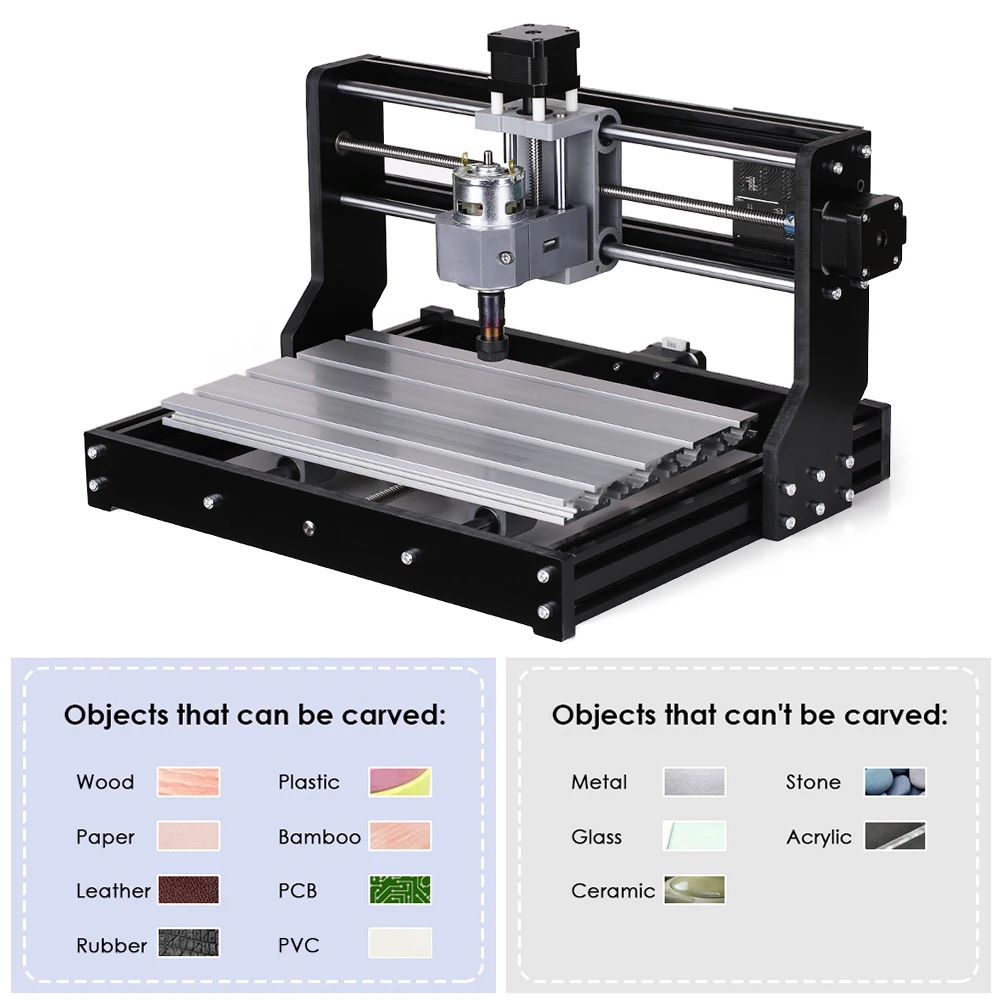 Этот гравировальный станок DIY с ЧПУ специально разработан для развлечения, учебы и исследований DIY с профессиональным программным обеспечением GRBL, что дает вам Экстремальный портативный опыт. Этот гравировальный станок с ЧПУ имеет функцию гравировки, резьбы и фрезерования. Этот резной станок может быть выгравирован пластиком, деревом, акрилом, ПВХ, печатной платой, деревом или подобным материалом. Сверло не может выгравировать твердый металл, нефрит или другие твердые материалы.Особенности:Маленький и практичный, без проблем для использования на вашем столе.Система управления является открытым исходным кодом (технология, которая контролирует систему) для некоторых игроков, которым нравится DIY.Настольный DIY Мини гравировальный станок с ЧПУ для резьбы и более экономичный, чем обычный гравировальный станок.Поддержка нашего профессионального английского программного обеспечения для Win 7, XP, Win 8, Win 10.300x180x45 мм большая рабочая зона, программное обеспечение управления: GRBL (включая патрон ER11).Алюминиевый сплав и нейлоновый материал с тонкой обработкой показывают превосходное качество.Очень интересно устанавливать и использовать, идеальный подарок для любителей гравировки DIY.Широкое Применение: используется для печати, ручных инструментов и промышленной обработки.Примечание:1. Машина представляет собой набор для самостоятельной сборки.2. Материалы могут быть выгравированы: дерево, бамбук, бумага, пластик, кожа, резина, рог, губчатый лист или другой легковоспламеняющийся пластик (например, чехол для телефона, мышь, карандаш, имя карты, кошелек, пластиковая расческа).3. Материал s не может быть выгравирован: металлы, стекло, камень, керамика, ювелирные изделия, серебро, светоотражающий материал, полупрозрачный и прозрачный материал.Характеристики:Модель: CNC3018PROМатериал: алюминиевый сплав + фенольная смолаОсновной цвет: черный + серебристыйИсточник питания: 100-240 В переменного тока на выходе 24 в 5,6 АТип вилки: США/ЕС(Опционально)Поддерживаемые ОС: Windows XP / Win 7 / Win 8 / Win 10 (32/64)Поддерживаемые форматы: jpg / bmp / pngПорт связи: Micro USBПлощадь Гравировки: 300x180x45 ммРазмер оправы: 400x330x240 мм (не включает часть выступа двигателя)Размер настольной платы: 300x180 ммШпинделя: 775 шпиндель мотор 24V: 8000r/минПатрон шпинделя: ER11Шаговый двигатель: длина фюзеляжа 34 мм, ток 1.33A, 12 В. Крутящий момент 0,25 Н/мАлмазные сверла: наконечник 0,1 мм, 20 градусов, диаметр 3,175 мм (содержит 10 шт.)Программное обеспечение: GRBL контрольРежим гравировки: гравировка изображений, резьба по тексту, сканирование резьбы, резьба по контуру, резьба по пикселямНе вырезают предметы: Все металлы, стекло, камень, керамика, ювелирные изделия, серебро, светоотражающий материал, полупрозрачный и прозрачный материал.Можно вырезать предметы: все дерево, бамбук, бумага, пластик, кожа, резина, рожок, губчатый лист и т. Д.Размер посылка: 45*23*17 см/17,7*9,1*6,7 дюймовПосылка, вес: E5244US: 6650 г E5244US-1: 7000 г E5244US-500: 6810 г E5244US-2500: 6850 г E5244US-5500: 6940 гПосылка:(DIY Kit, нужно собрать самостоятельно.)1 * DIY Набор гравировальных станков с ЧПУ10 * сверла1 * ER11 патрон шпинделя