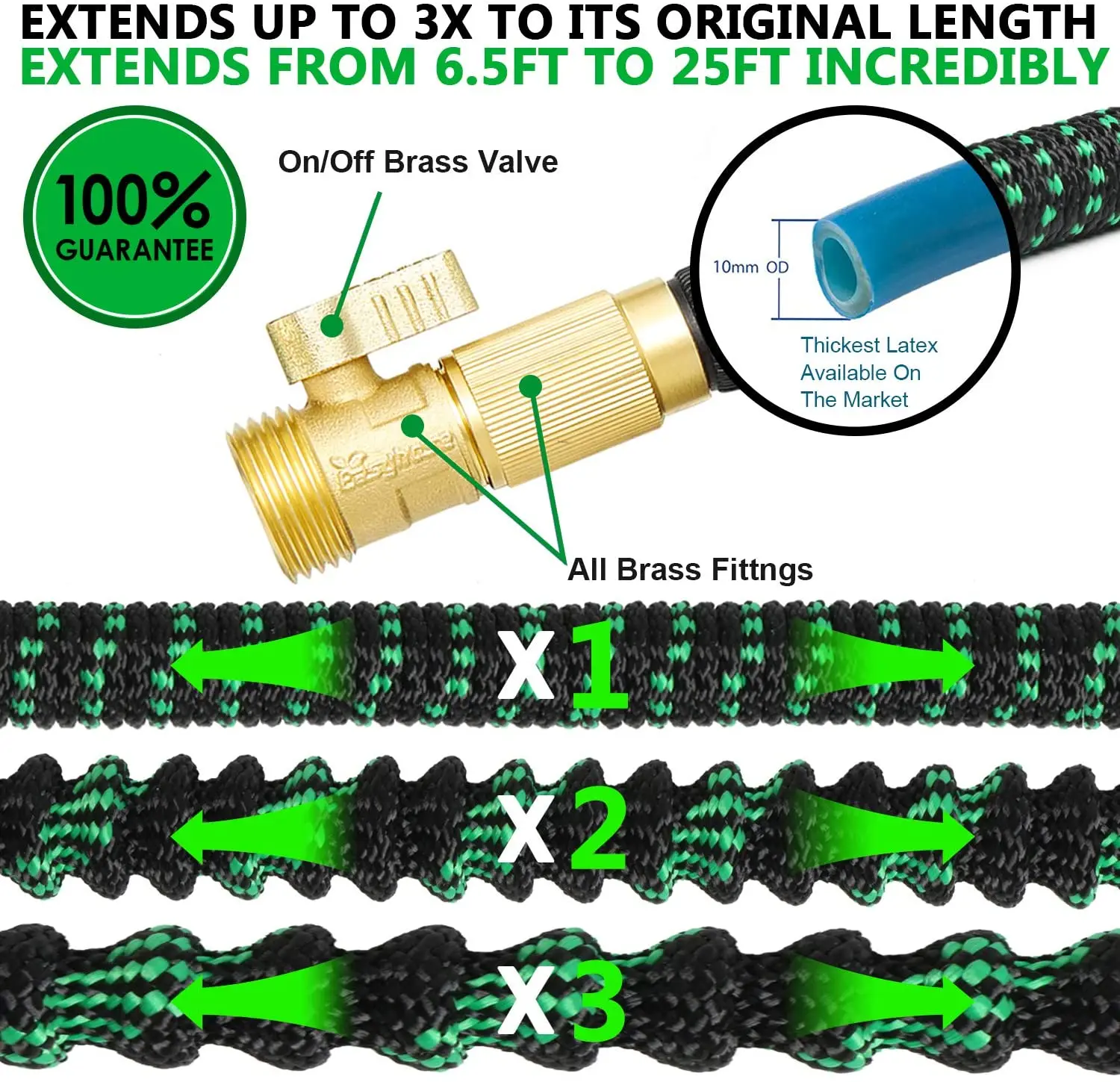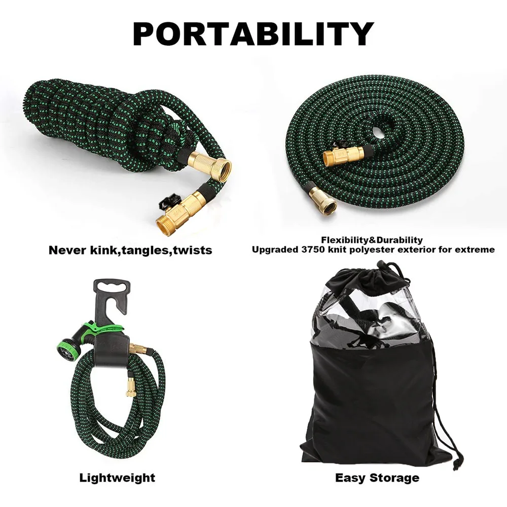 Высококачественный садовый шланг, увеличивающийся в размерах, 25-100 футов, гибкий садовый водяной шланг, пластиковая труба с распылителем