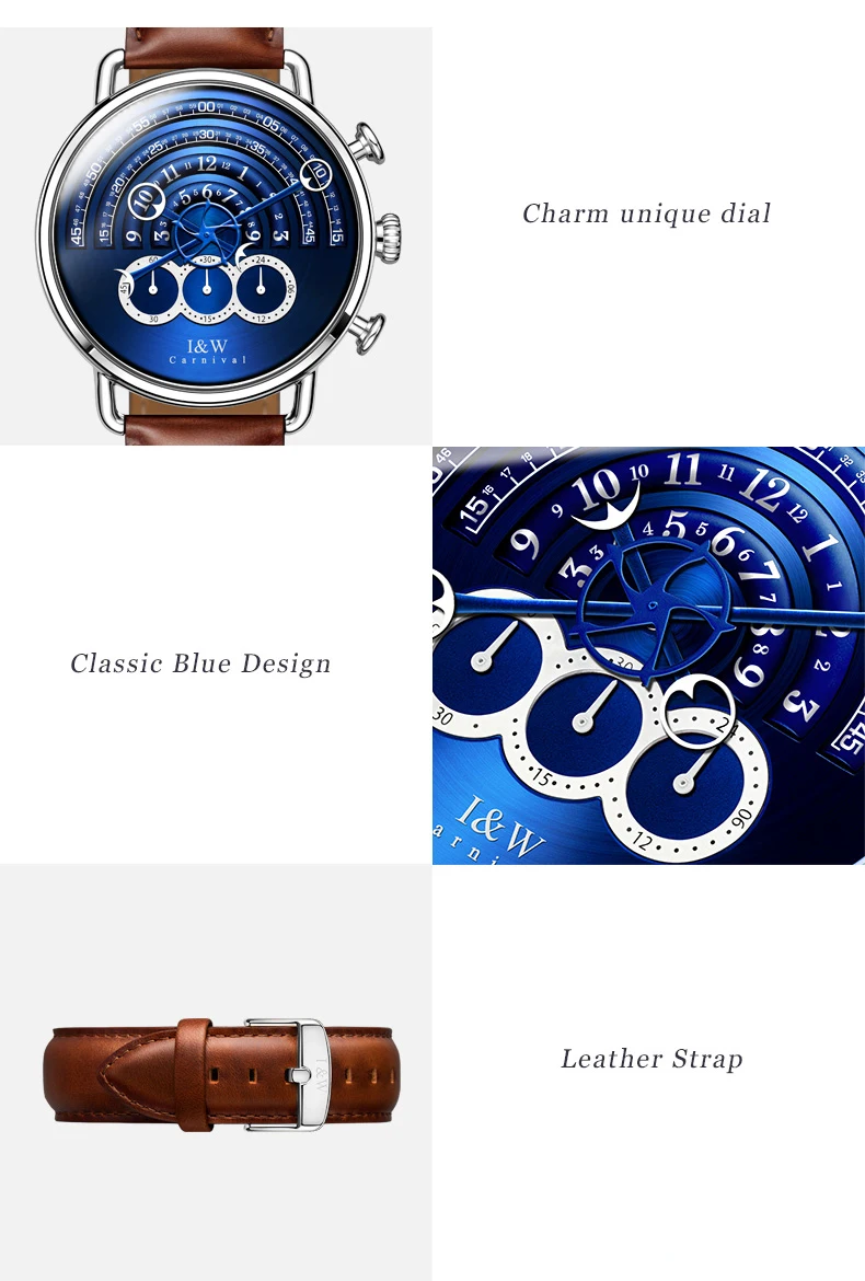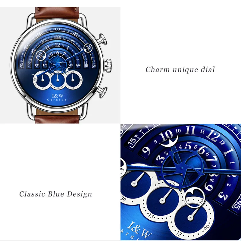 Лучший бренд Carnival IW, оригинальные Подиумные уникальные дизайнерские мужские часы wistwatch с хронографом и сапфиром, часы с кожаным ремешком