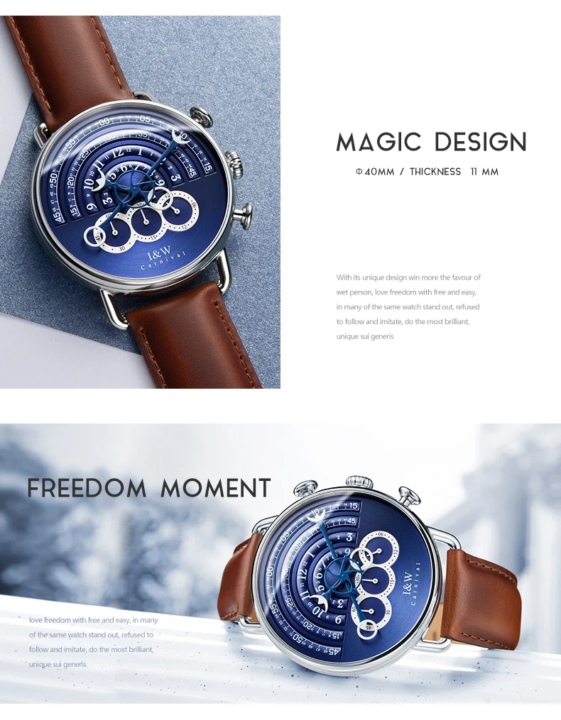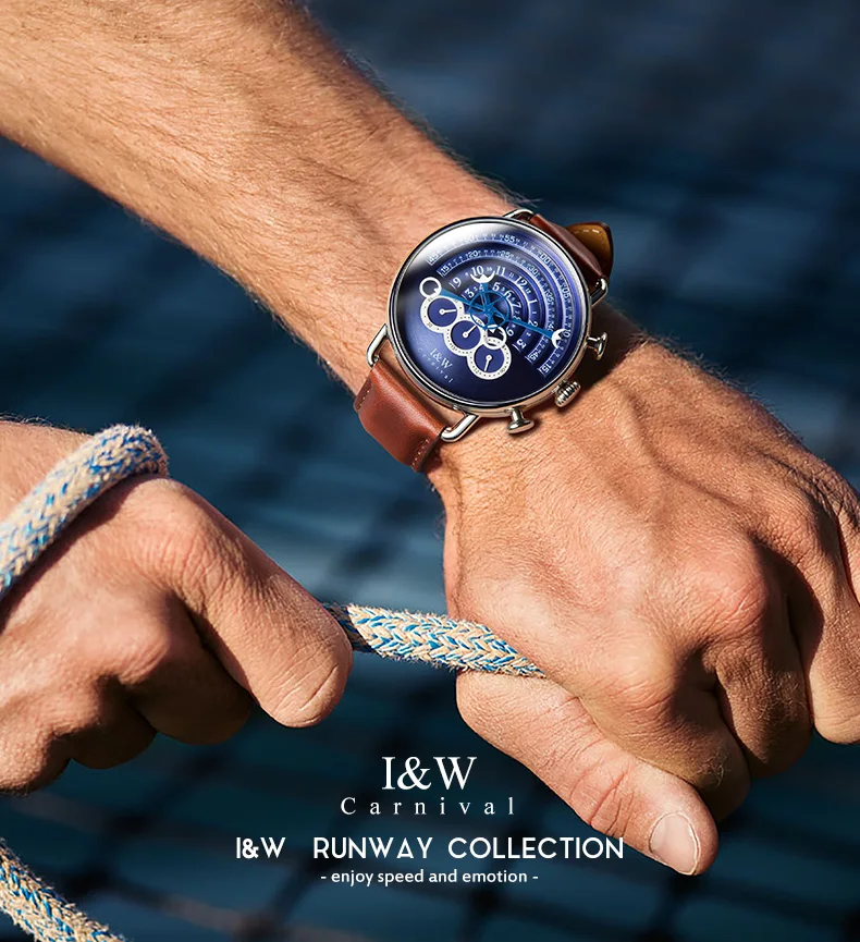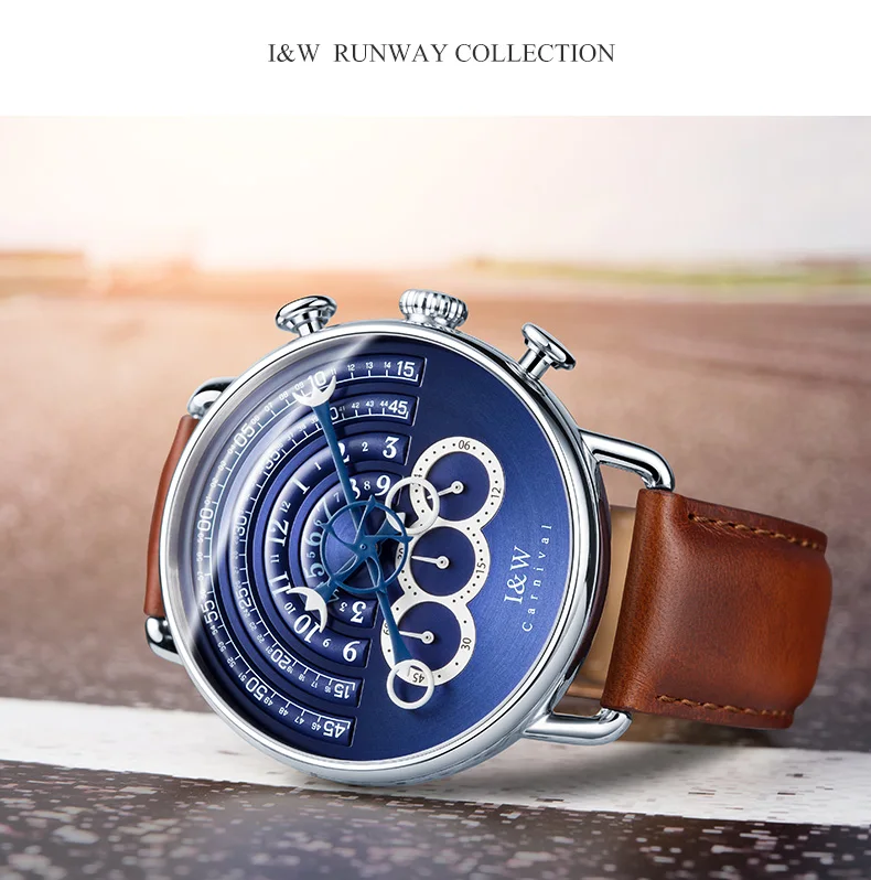 Карнавал IW роскошный бренд подиумный уникальный дизайн часы мужски...