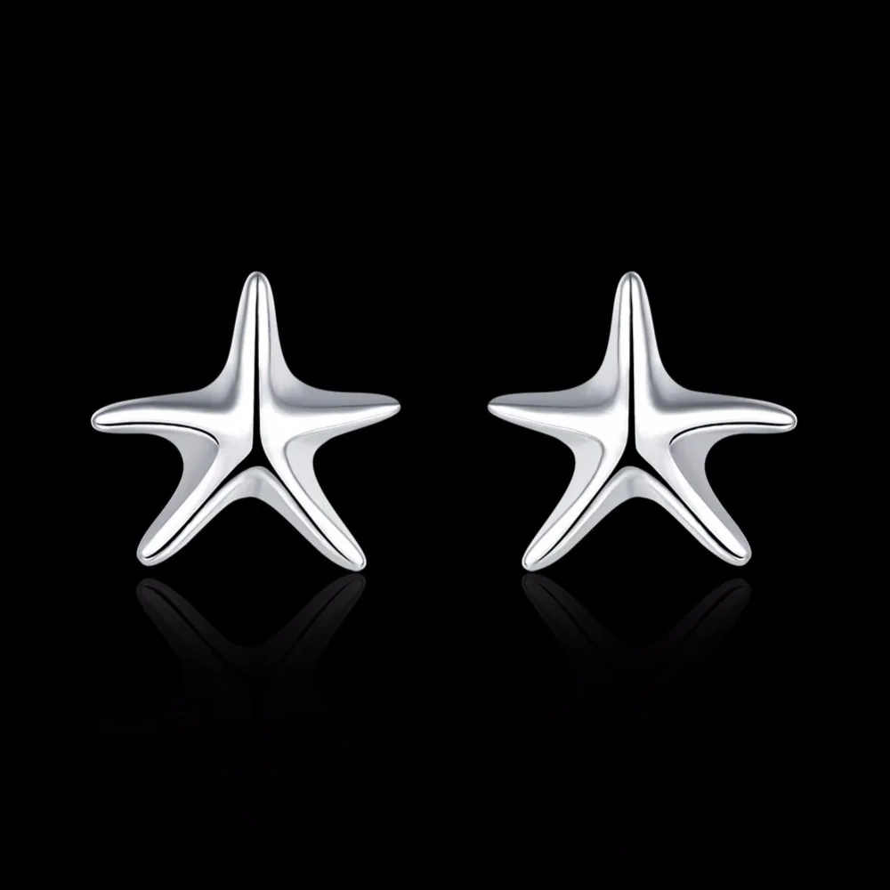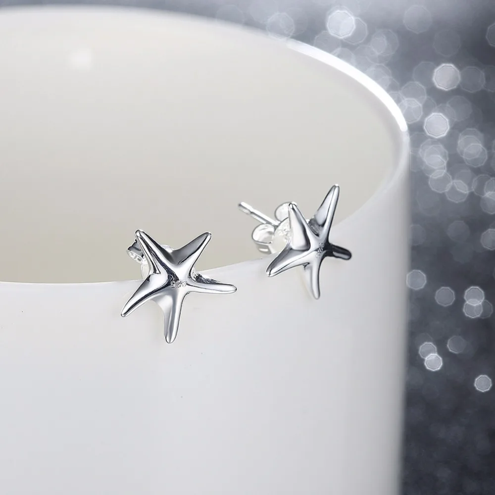 Серьги женские из серебра 100% пробы в виде морской звезды