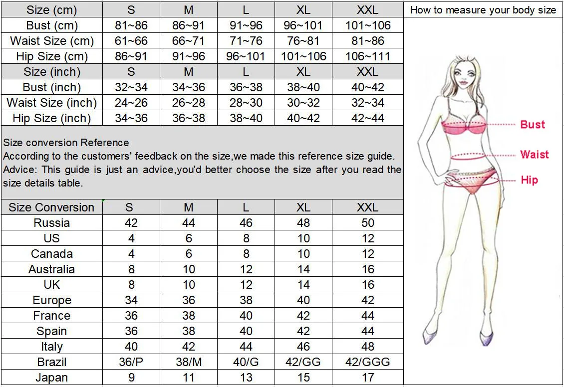 Примечание 1: Пожалуйста, сравните размеры с вашим обхватом груди, талии и бедер перед покупкой! Размер страны для справки: Размер S = США 4 Размер M = США 6 Размер L = США 8 Размер S = UK 8 Размер M = США 10 Размер L = US 12