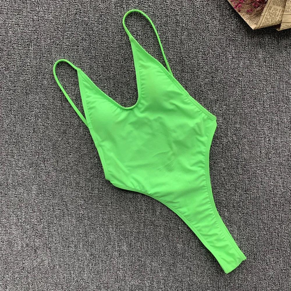 Брендовый однотонный Купальник для женщин, сексуальный неоновый купальник с открытой спиной, Цельный купальник, стринги, купальный костюм, Maillot De Bain, новинка, розовый