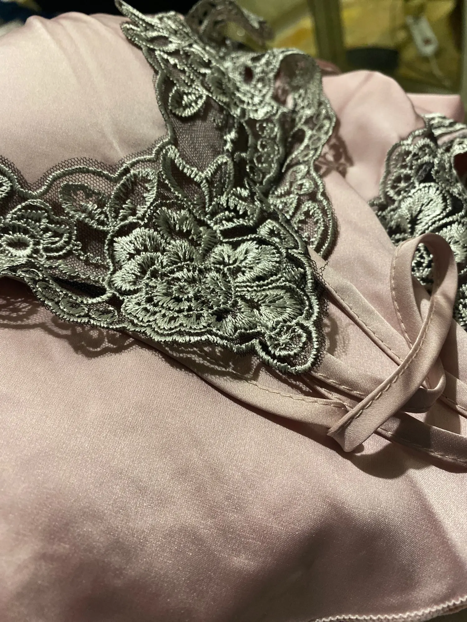 Комплект пижамный Женский, атласный, Шелковый, кружевной, с V-образным вырезом, весна, домашняя пижама