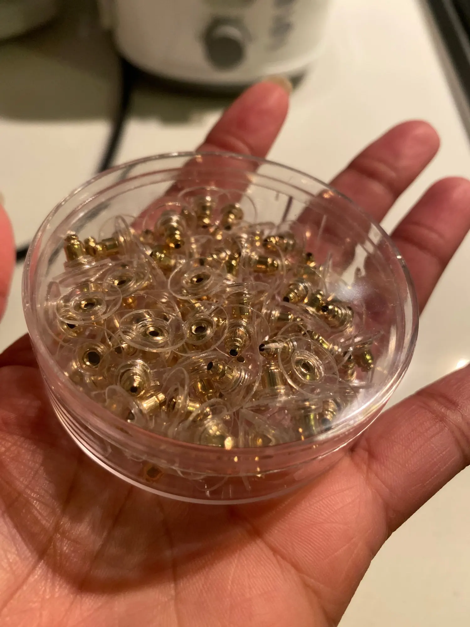 Металлическая часть за пластиком кажется слабой, поэтому я беспокоюсь, что она распадется и исчезнет, но в целом все в порядке. Когда пытаемся положить в него серьги, я должен надавить на него, и он все еще ощущается свободно.