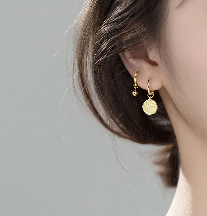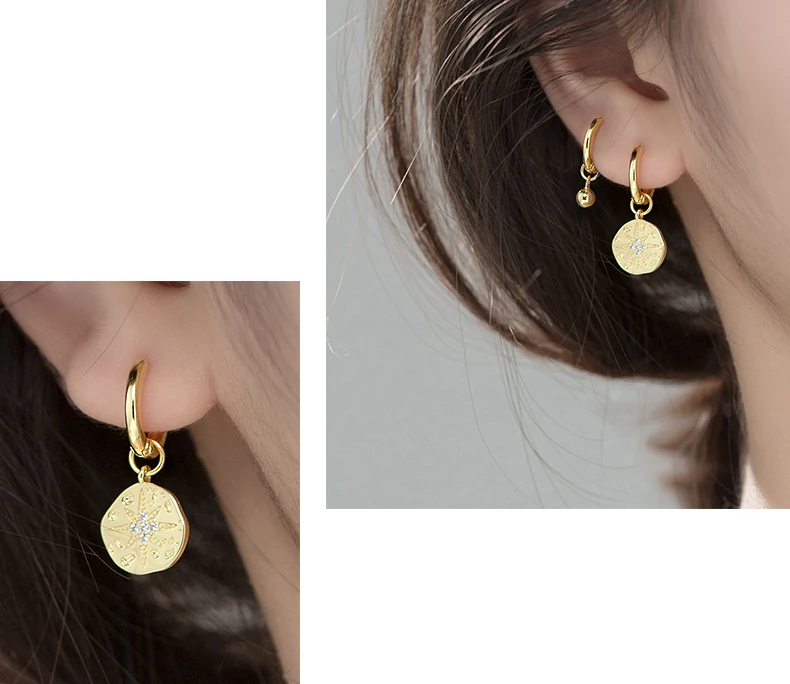 Modian 2 Стиль серьги серебряные бусины 925 пробы монета звезда цир...