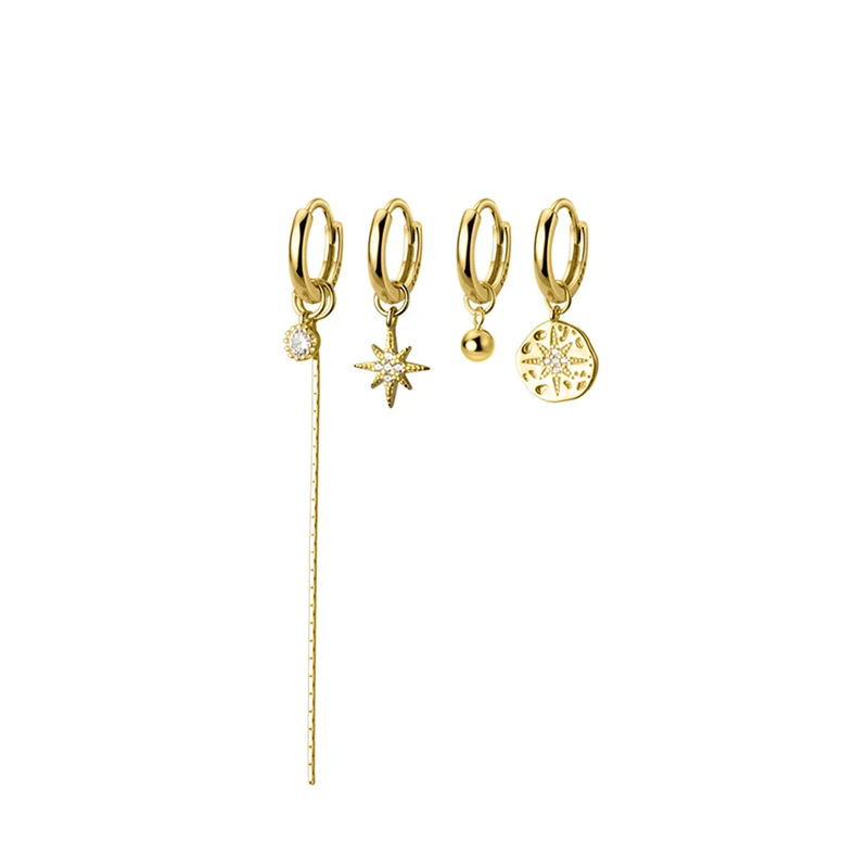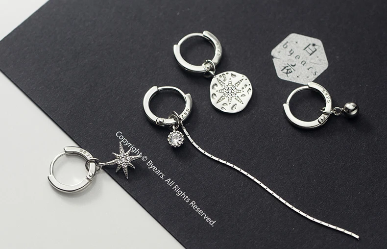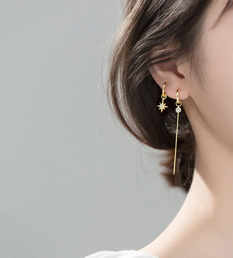 Асимметричные серьги из серебра 925 пробы с блестящей звездой, серь...