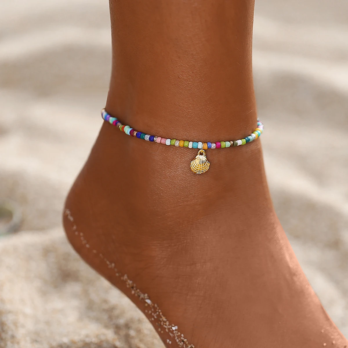 Богемный разноцветный летние пляжные браслеты на ногу с бусинами для женщин, ручная работа, бусины, ракушки, браслет на лодыжку, ногу, ювелирные изделия