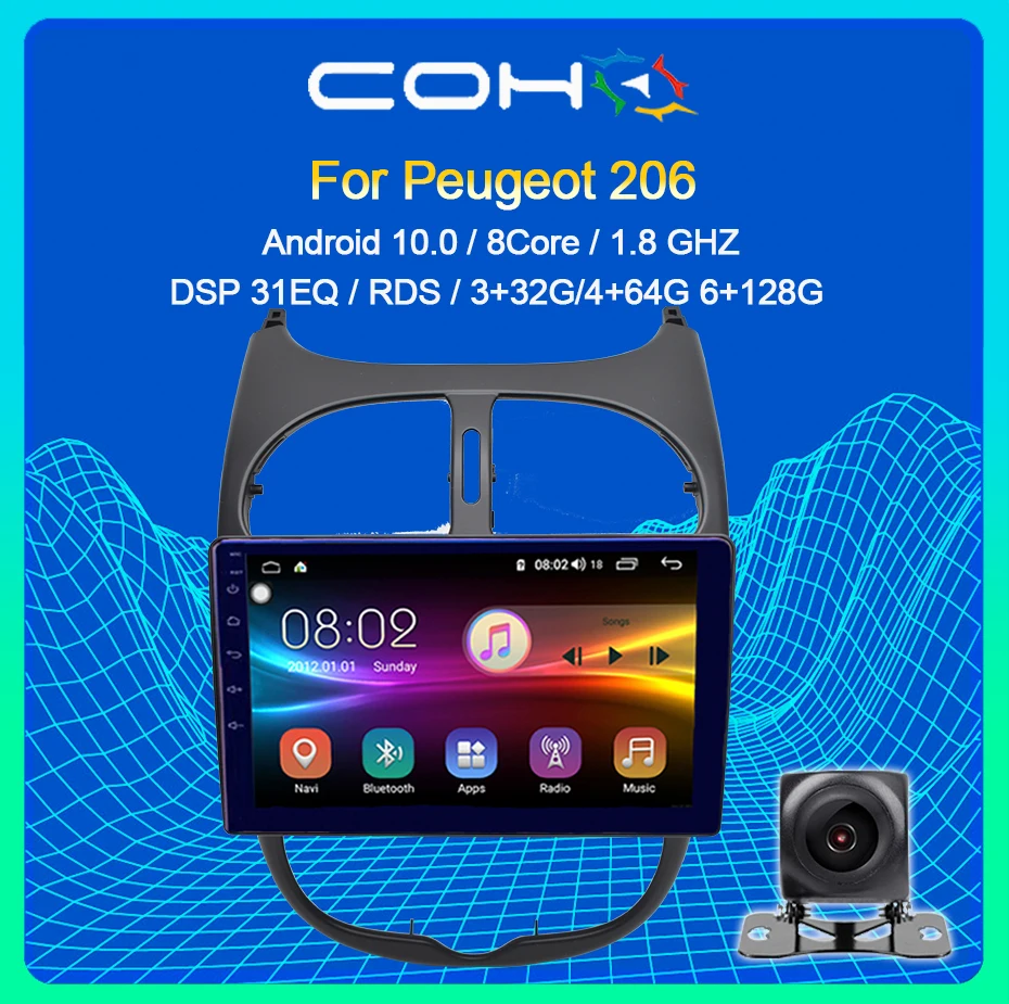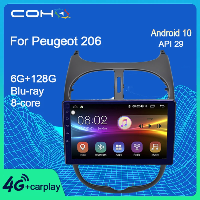 COHO Android 10 Octa Core 6 + 128G для Peugeot 206 2001-2008 автомобильное радио, мультимедийный видеоплеер, навигация GPS