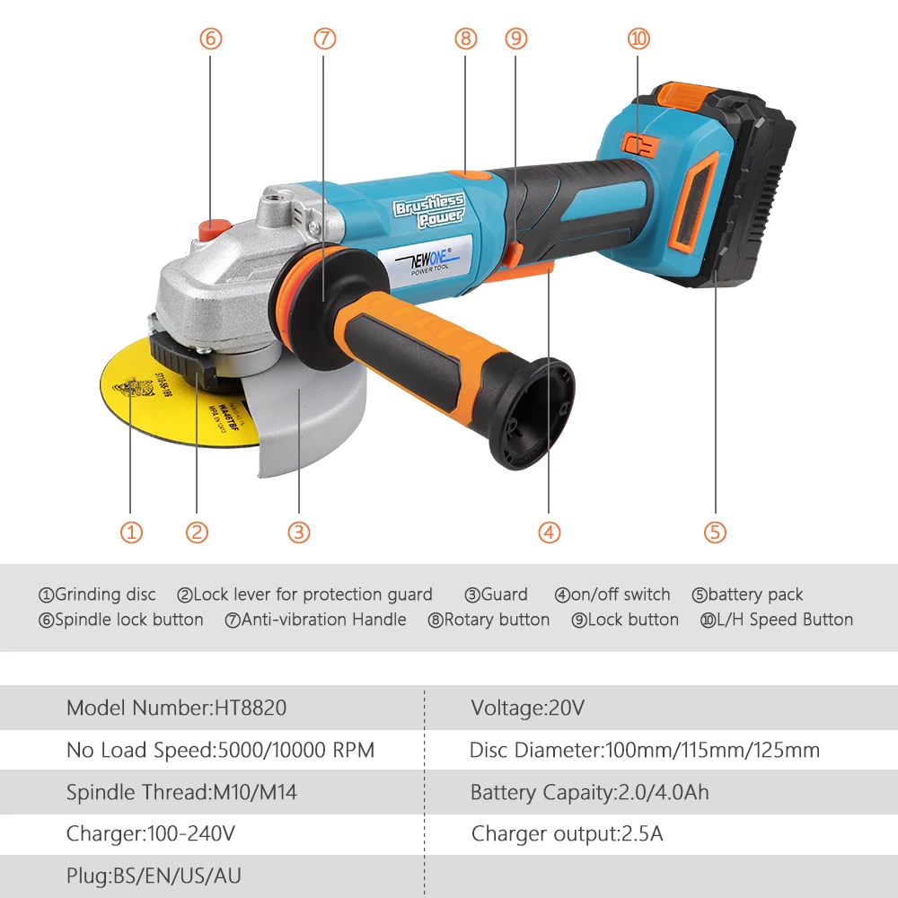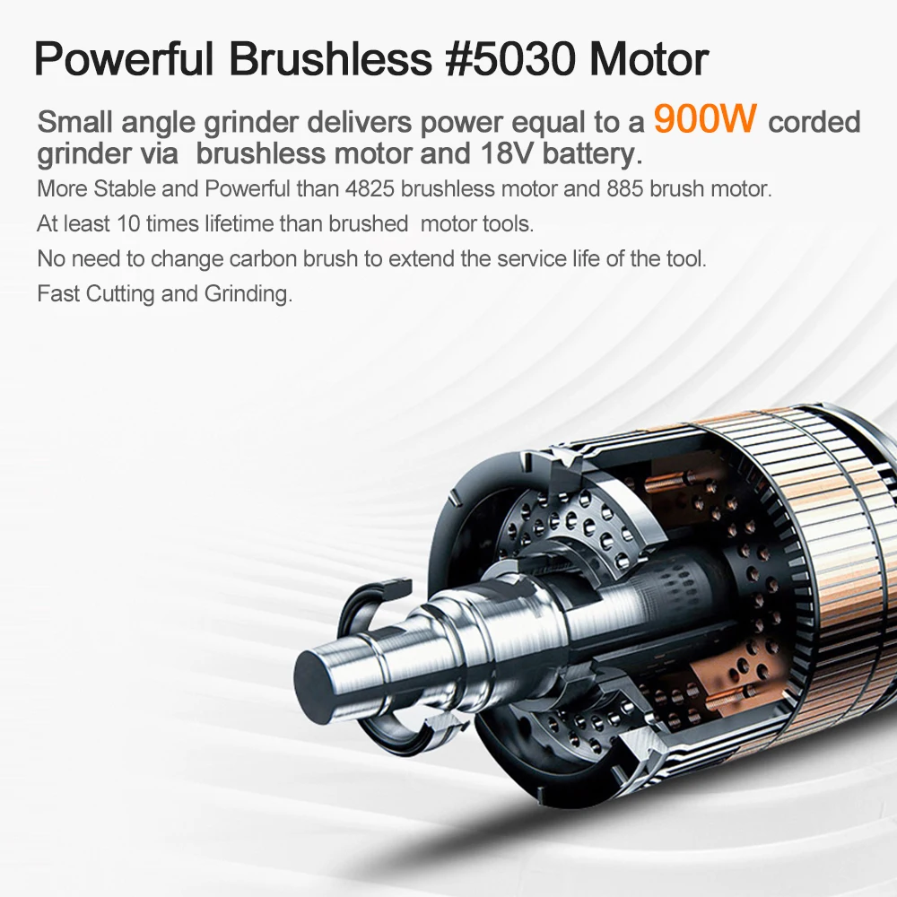 NEWONE 20V ионно-литиевая аккумуляторная угловая шлифовальная машина 900 Вт бесщёточным двигателем антивибрационные ручки 90 градусов вращения тела для резки и шлифования
