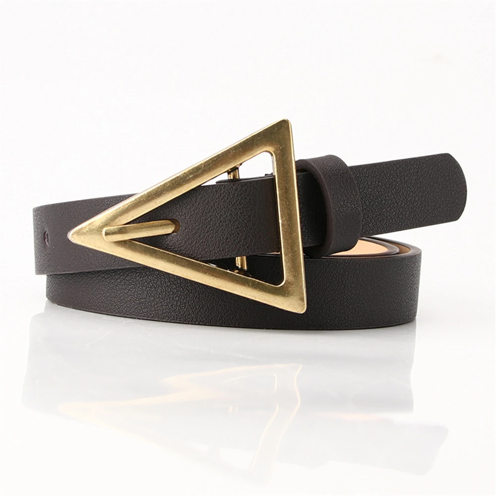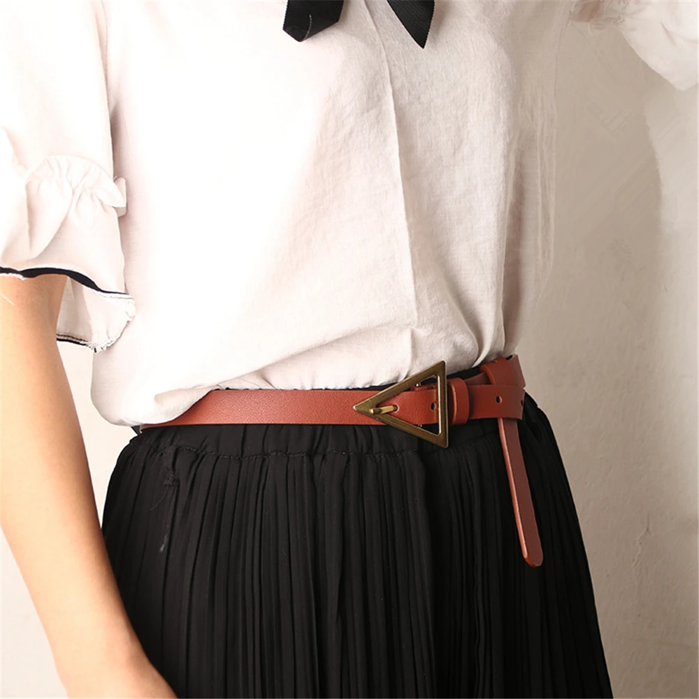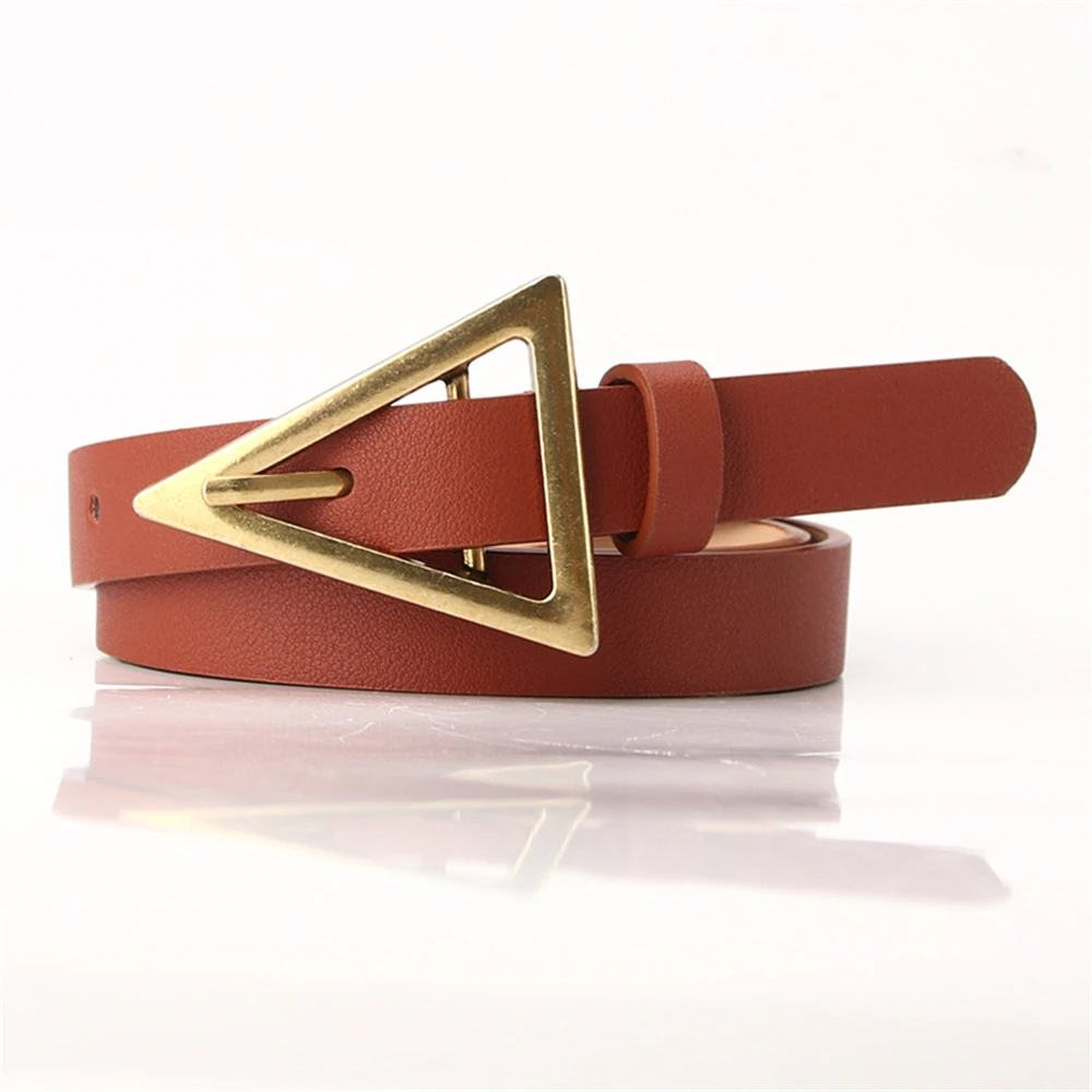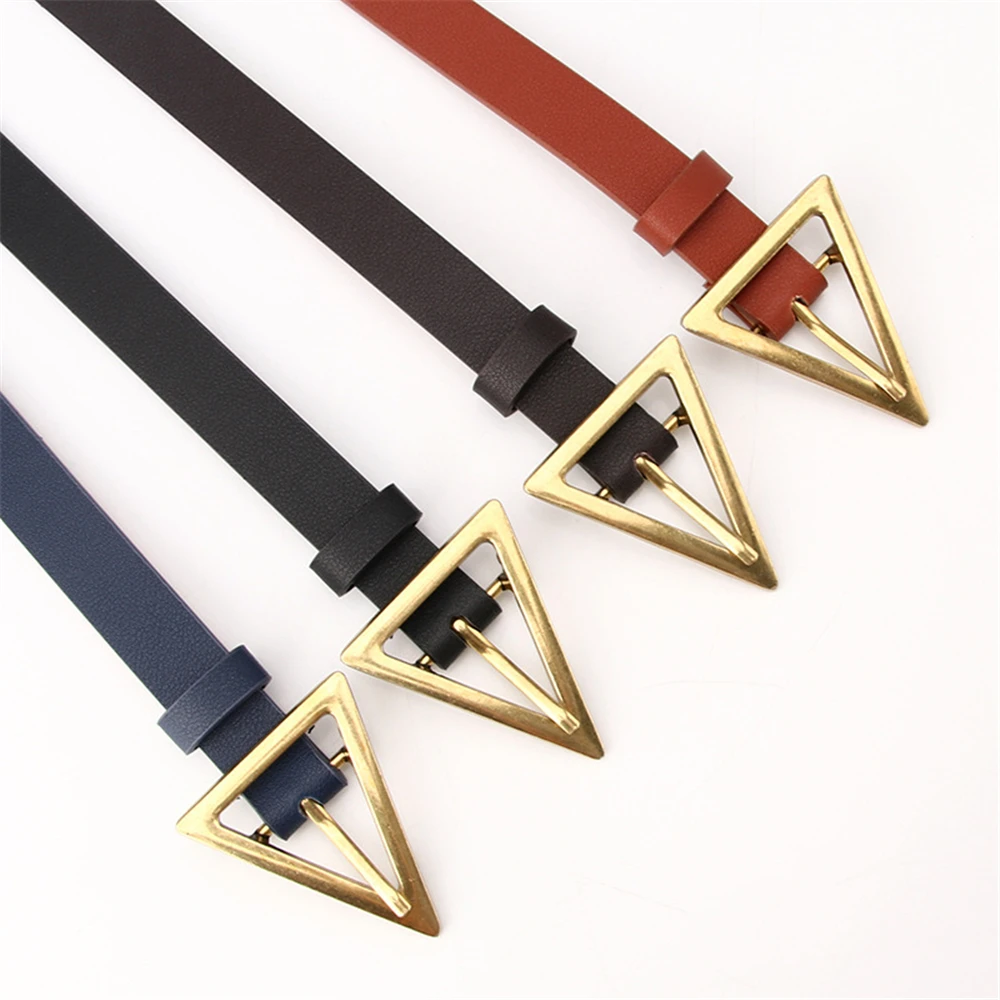 Ремень RAINIE SEAN женский кожаный, тонкий винтажный пояс с треугольной пряжкой, цвет верблюжий, черный, темно-синий, для брюк