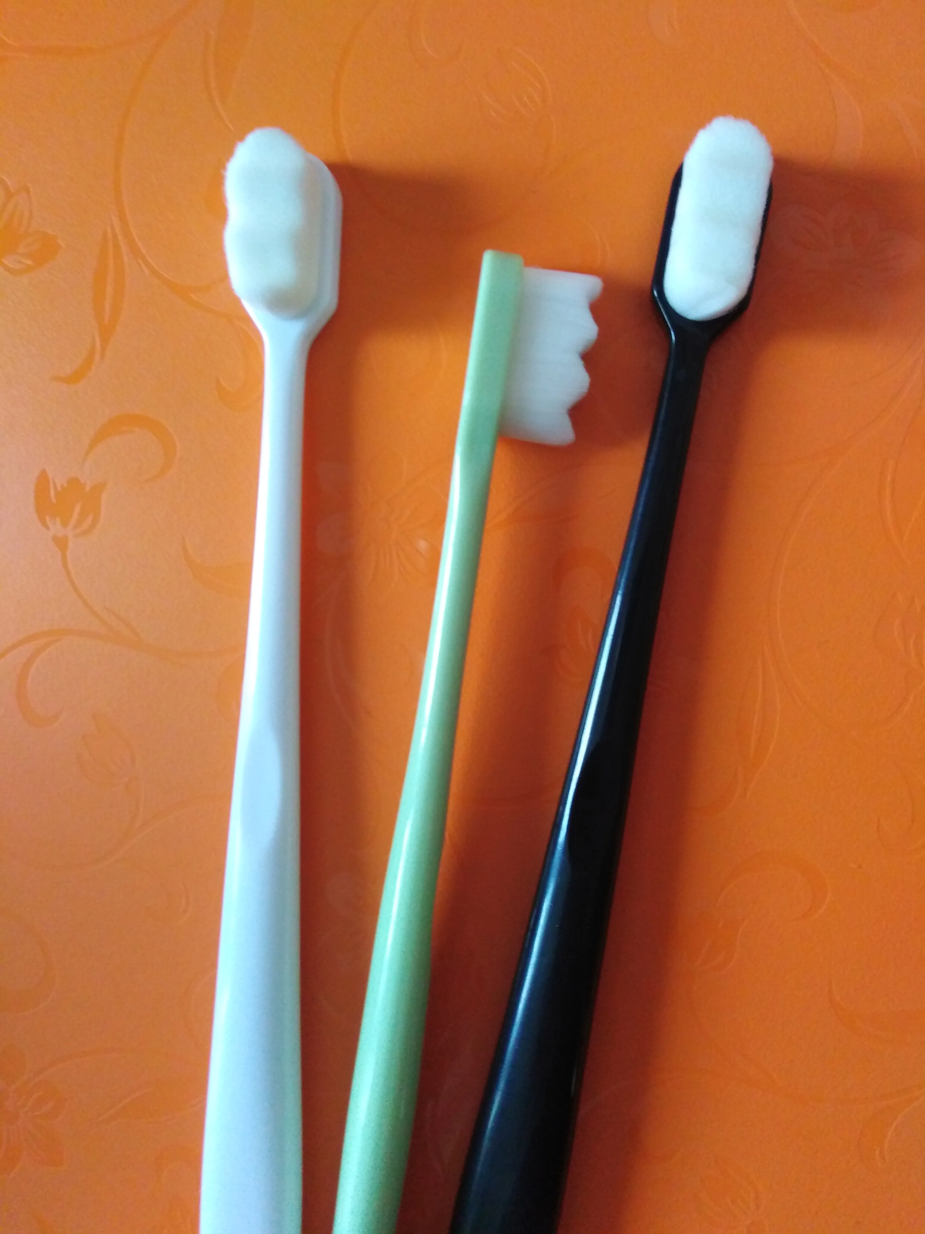 Просто шикарные щётки. Чистят хорошо, прочищают в труднодоступные местах. А главное, не повреждают десна. Брали их так как десна очень слабые и кровоточат, и обычные щётки раздирали десна в кровь. А эти щётки просто спасение.
