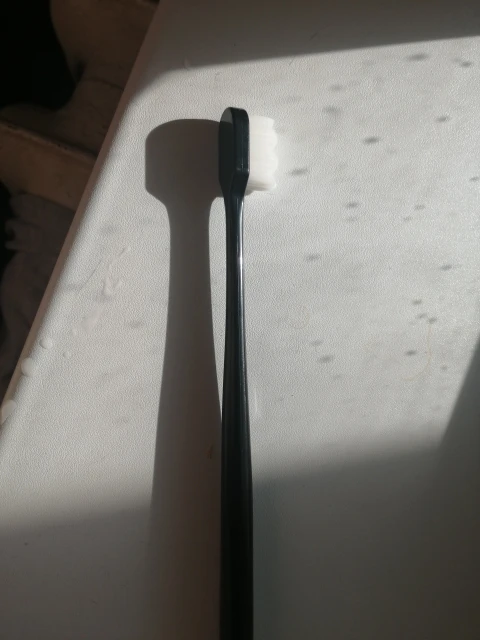 Хорошая щетка,полирует зубы на отлично, приятная, но буду использовать в качестве дополнения к основной . У чёрной есть поверхность для чистки языка,у белой нет