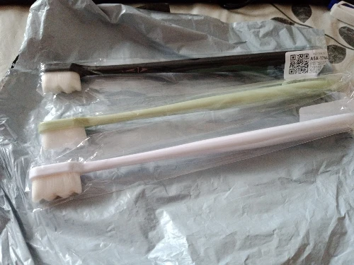 Щётки пришли целыми, в срок. Пользоваться ими пока что непривычно - такое ощущение, будто они как плотная губка (из-за того, что щетинки очень плотно прилегают друг к другу). Муж так и не приспособился, ему не понравилось, а я довольна.