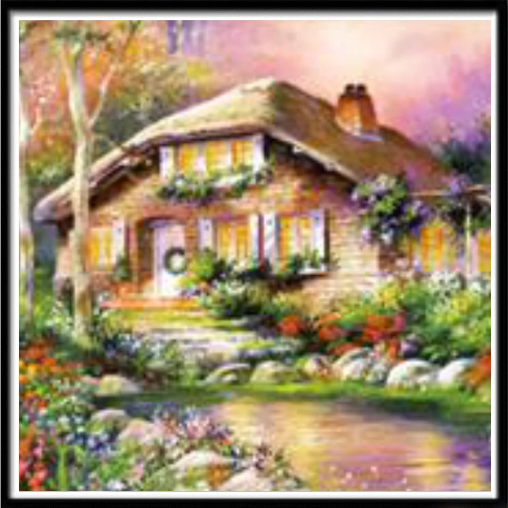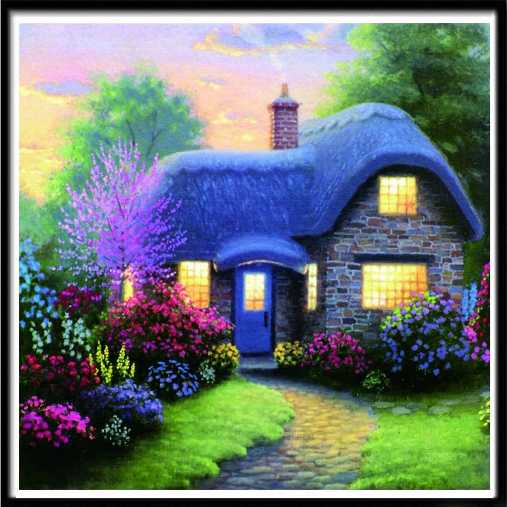 Картины из алмазов 5D сделай сам, полные страз, пейзаж, коттедж, ал...