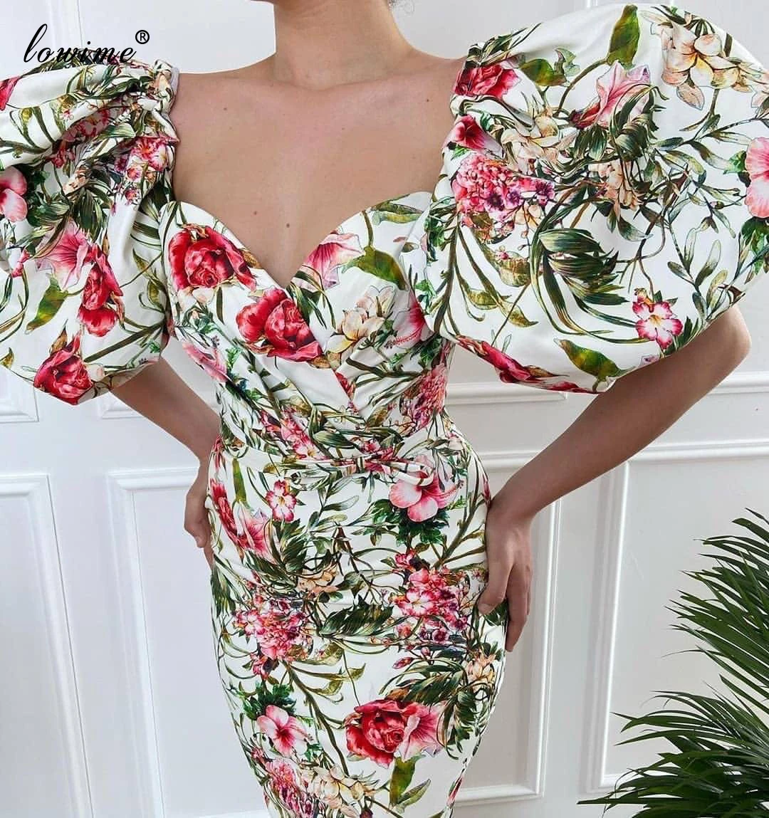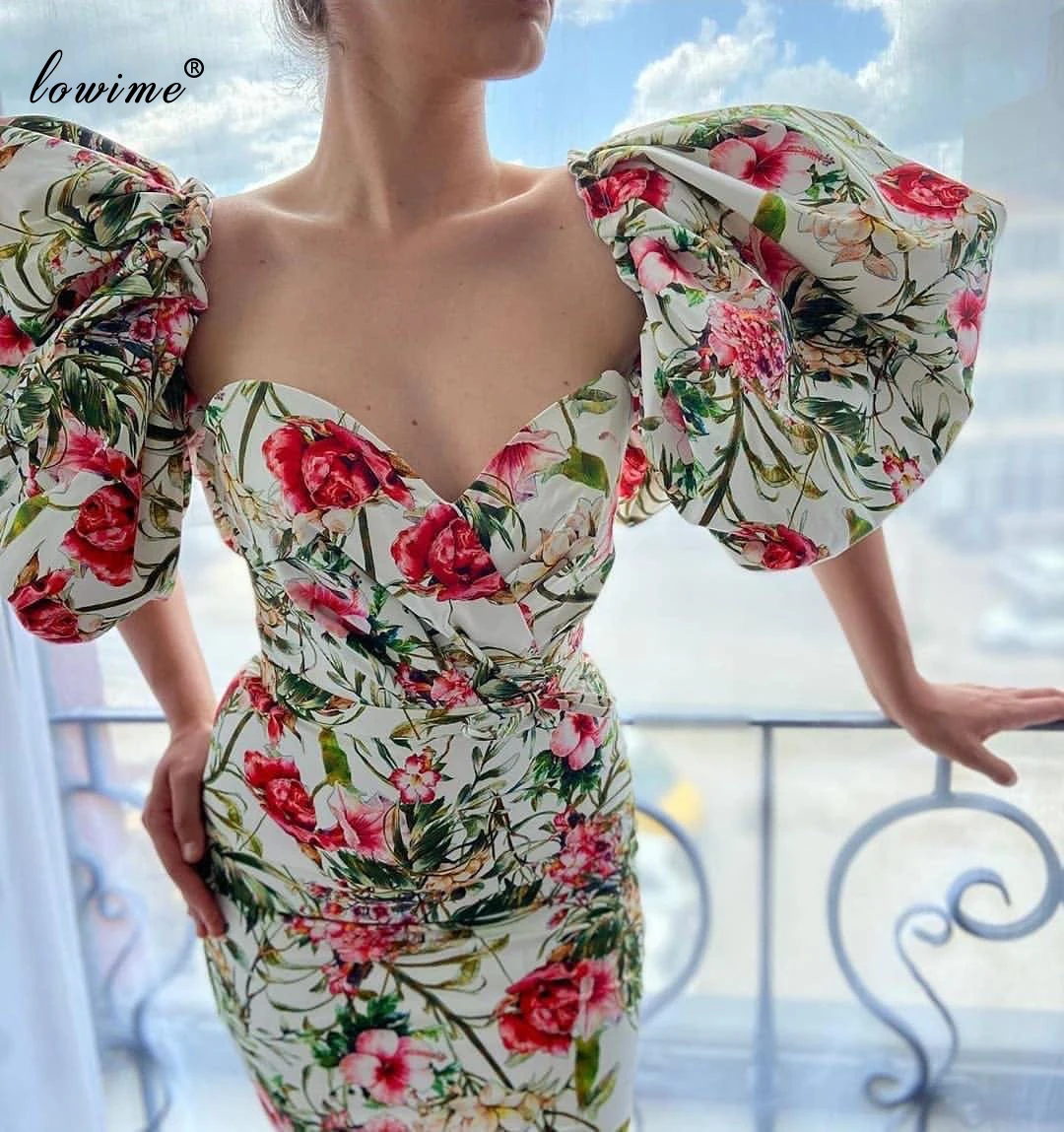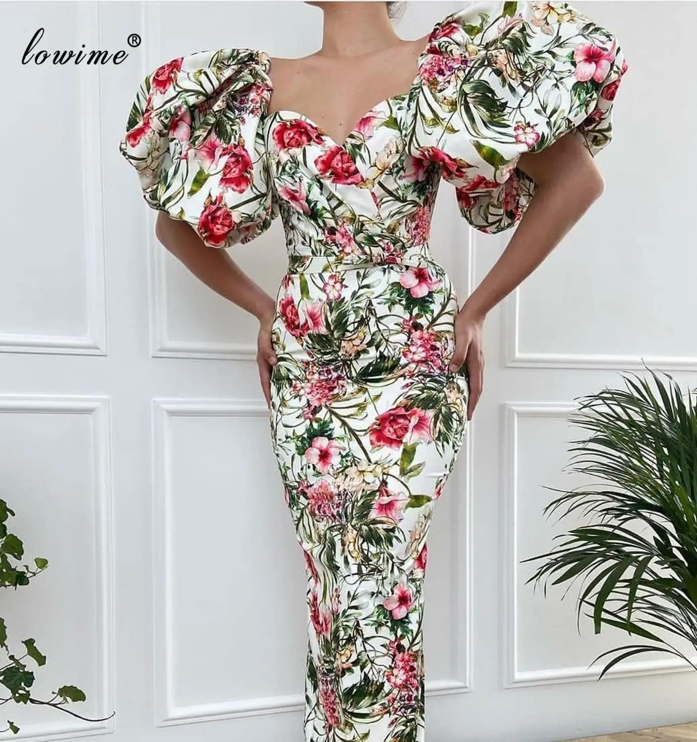 Женское вечернее платье-русалка, Элегантное Длинное платье с цветочным принтом и пышными рукавами, для фотосессии