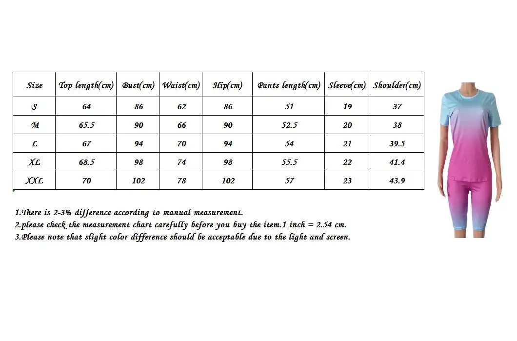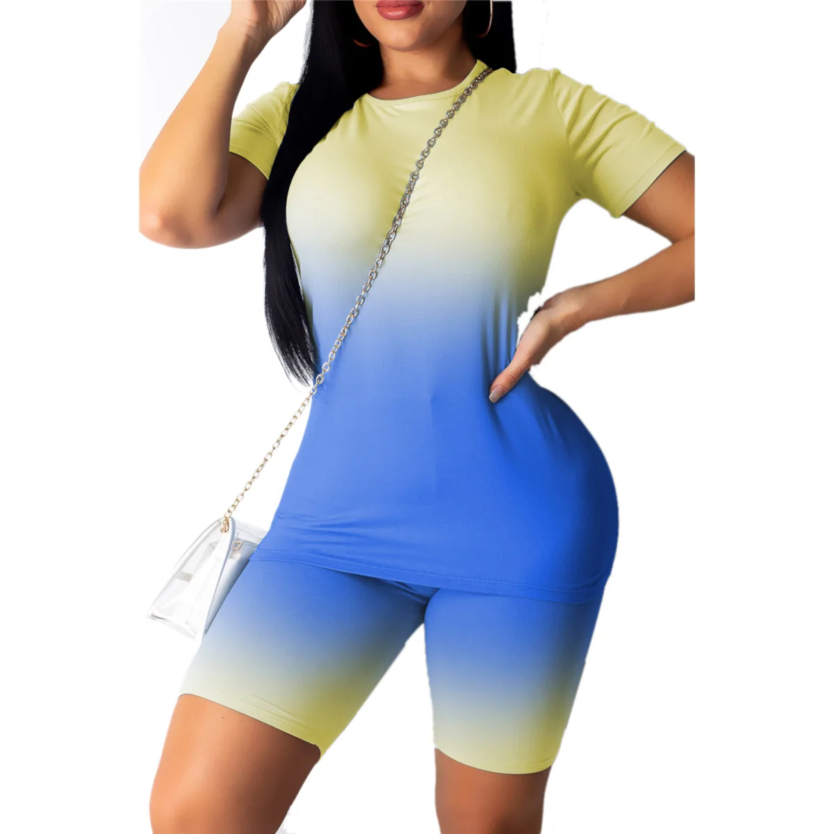 Женский комплект из двух предметов, футболка с круглым вырезом и короткими рукавами и шорты, комплект с градиентными цветными свитшотами, одежда для отдыха, уличная одежда, 2020