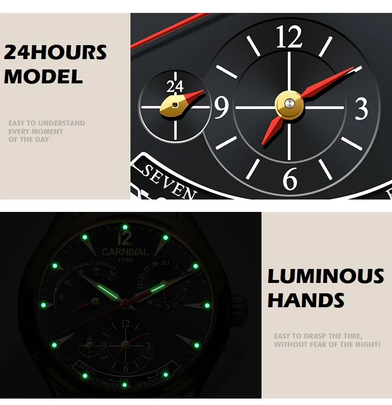 Высококачественные механические часы CARNIVAL, многофункциональные ...