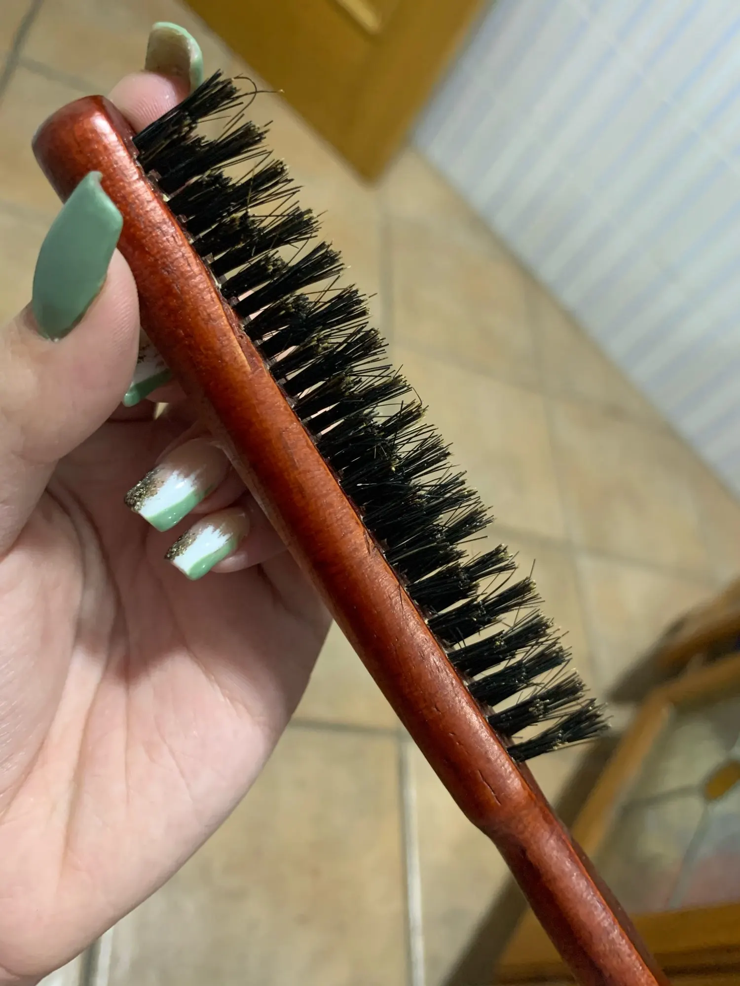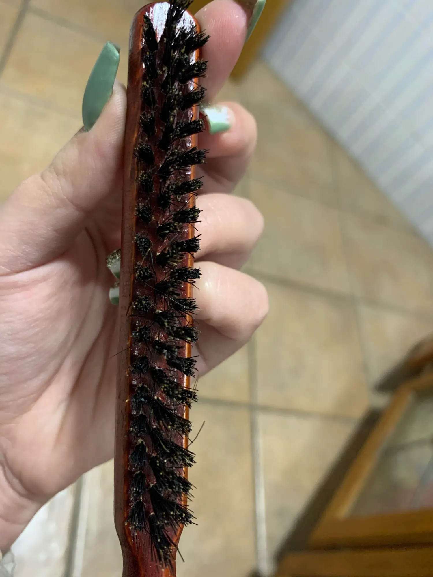 Расческа прибыла с щетиной, но делает его работу. Ручка выглядит устойчивой