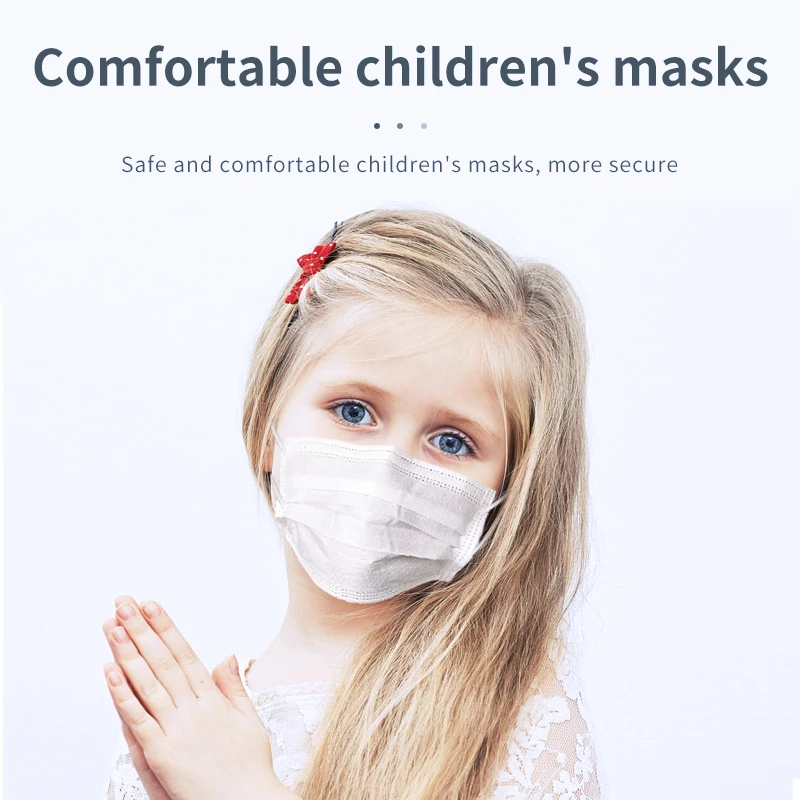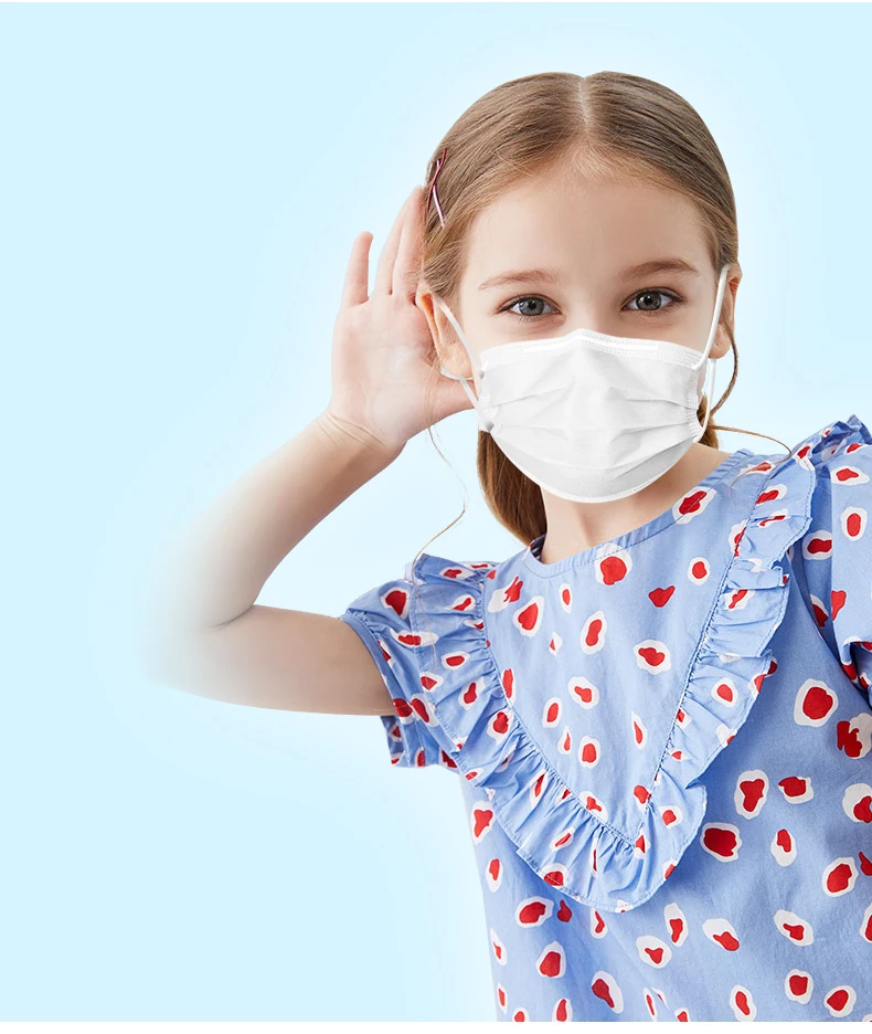 Маска детская одноразовая из нетканого материала, 3 слоя, белого и синего цветов, От 4 до 13 лет