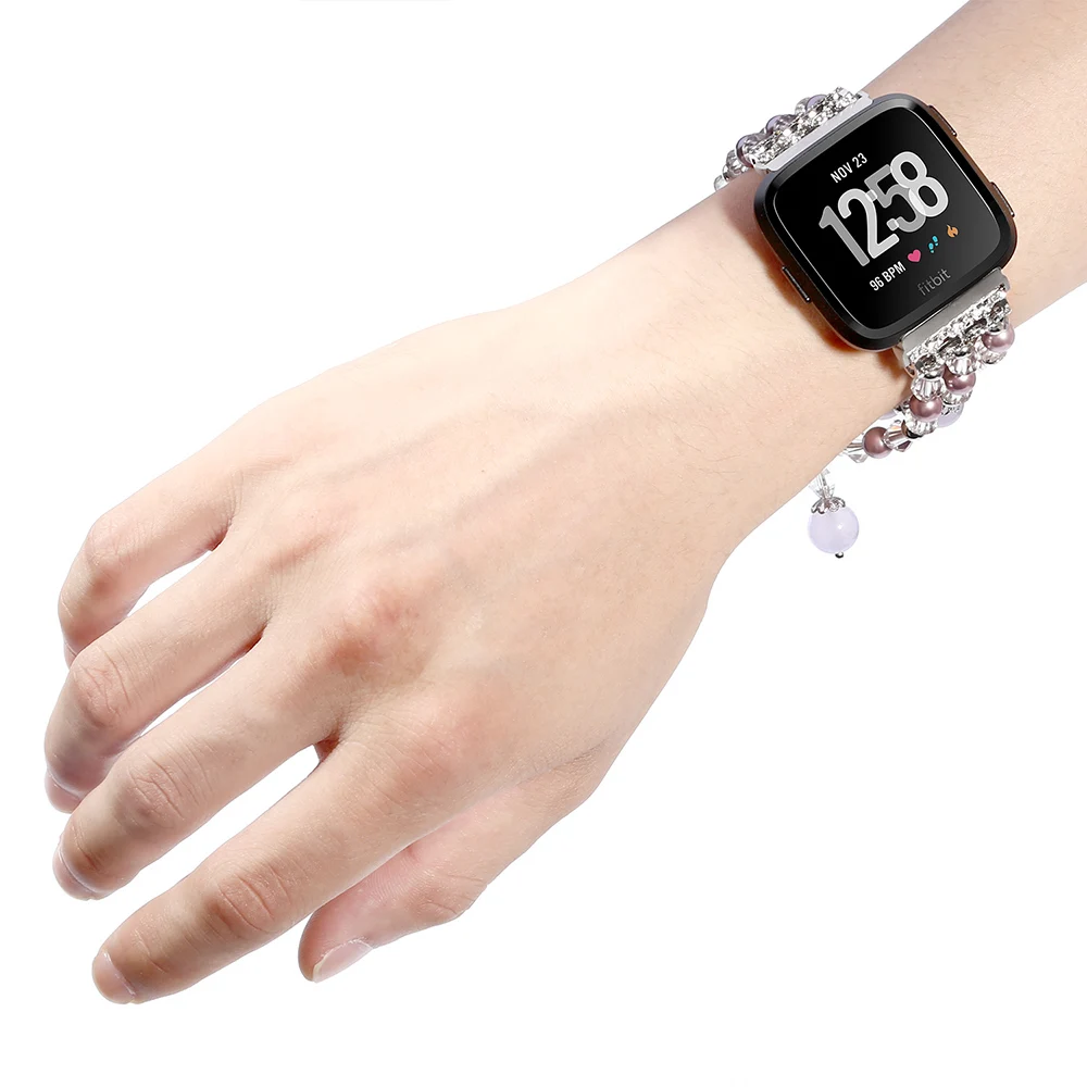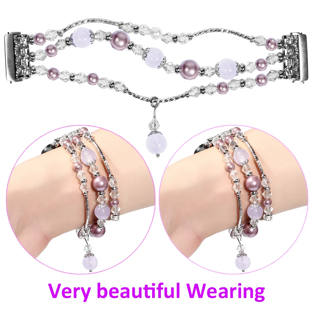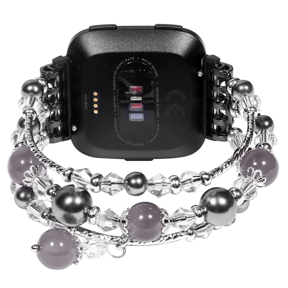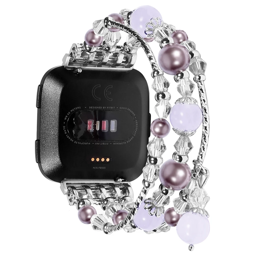 Фиолетовые браслеты для Fitbit Versa 2 Versa Lite, ювелирные изделия, браслет с эластичными бусинами и жемчужинами для женщин и девушек, сменный ремешок
