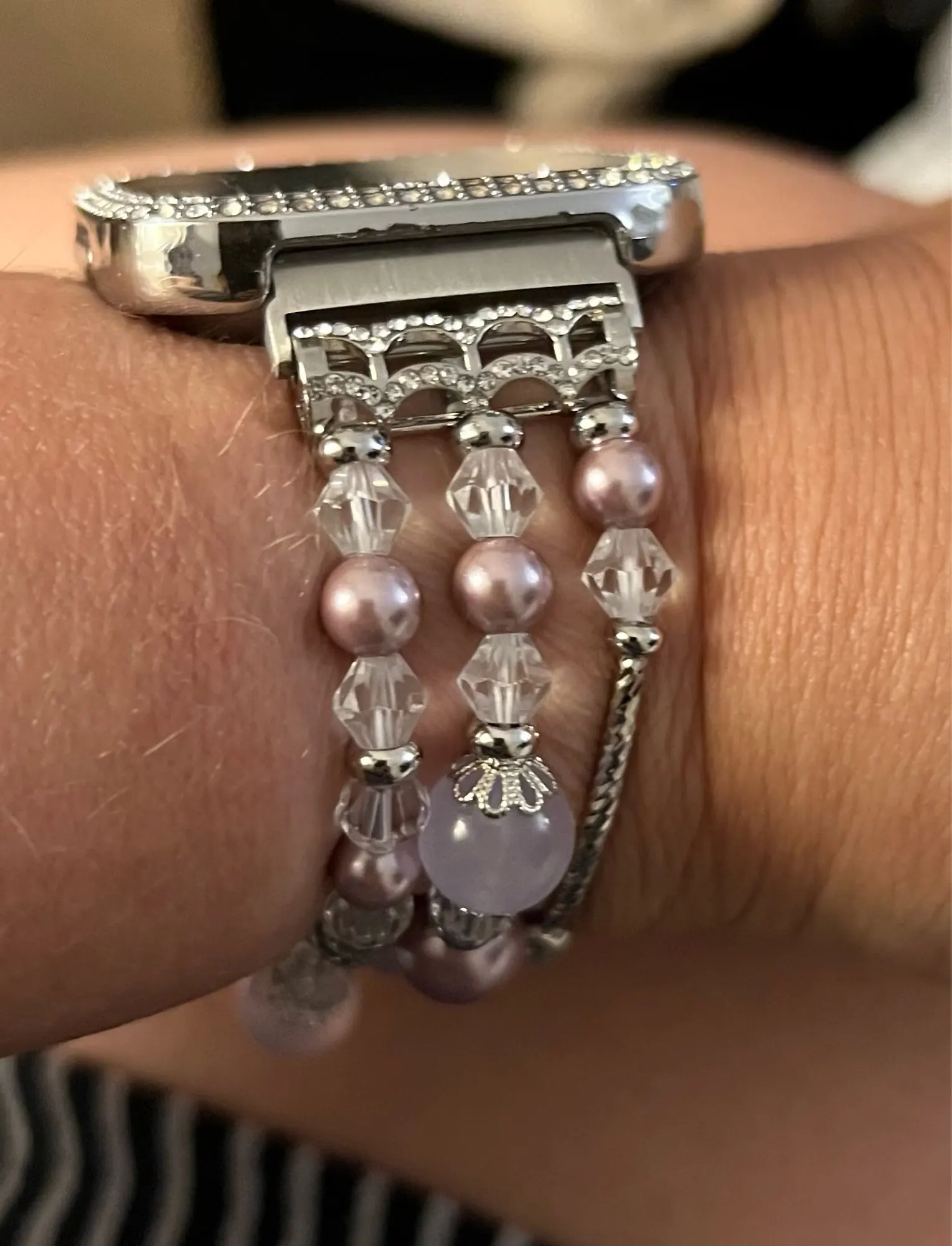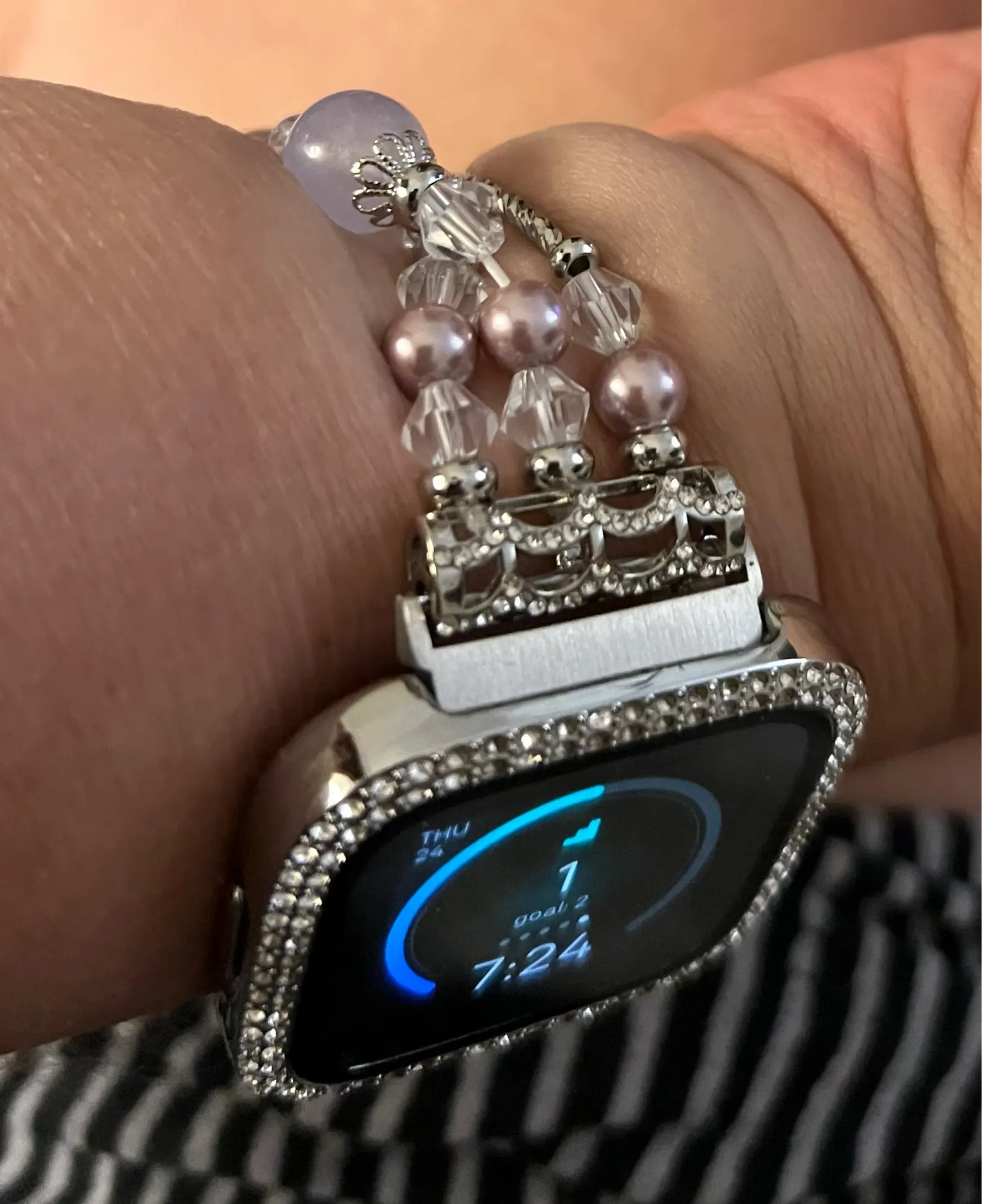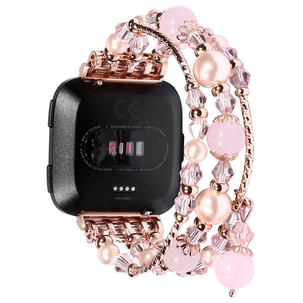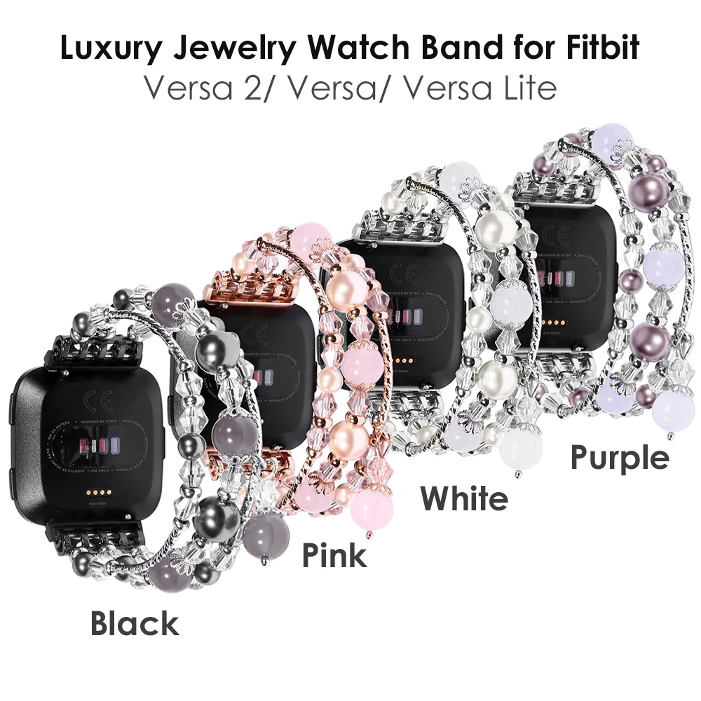 Фиолетовые браслеты для Fitbit Versa 2 Versa Lite, ювелирные изделия, браслет с эластичными бусинами и жемчужинами для женщин и девушек, сменный ремешок