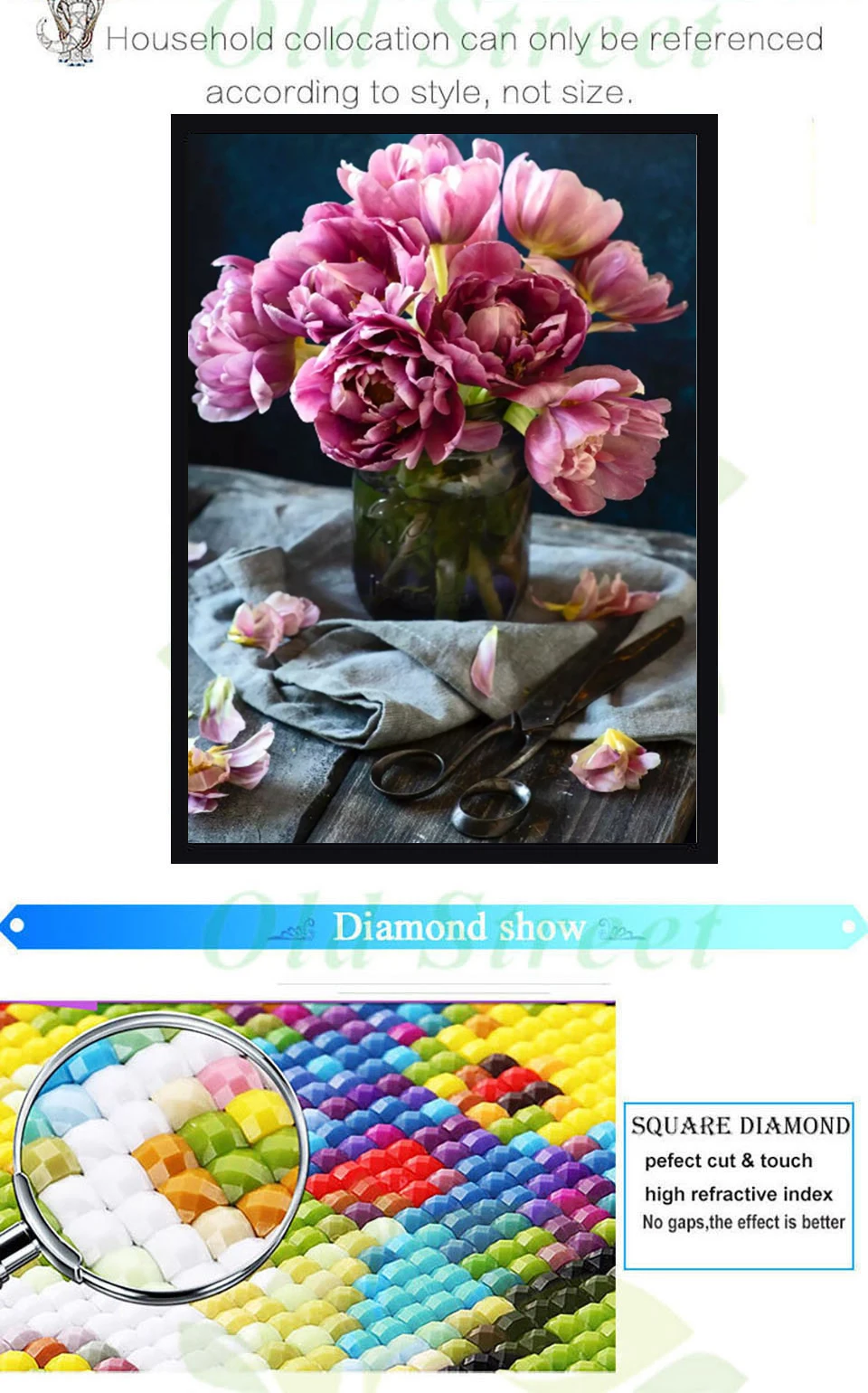 Полностью квадратнаякруглая дрель 5D DIY Алмазная картина "Тюльпаны...