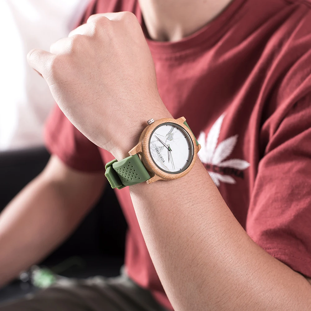 Мужские часы BOBO BIRD, популярные мужские Спортивные кварцевые наручные часы hodinky из дерева, мужские часы в мраморном стиле, силиконовые часы, оптовая продажа