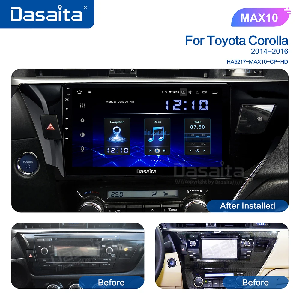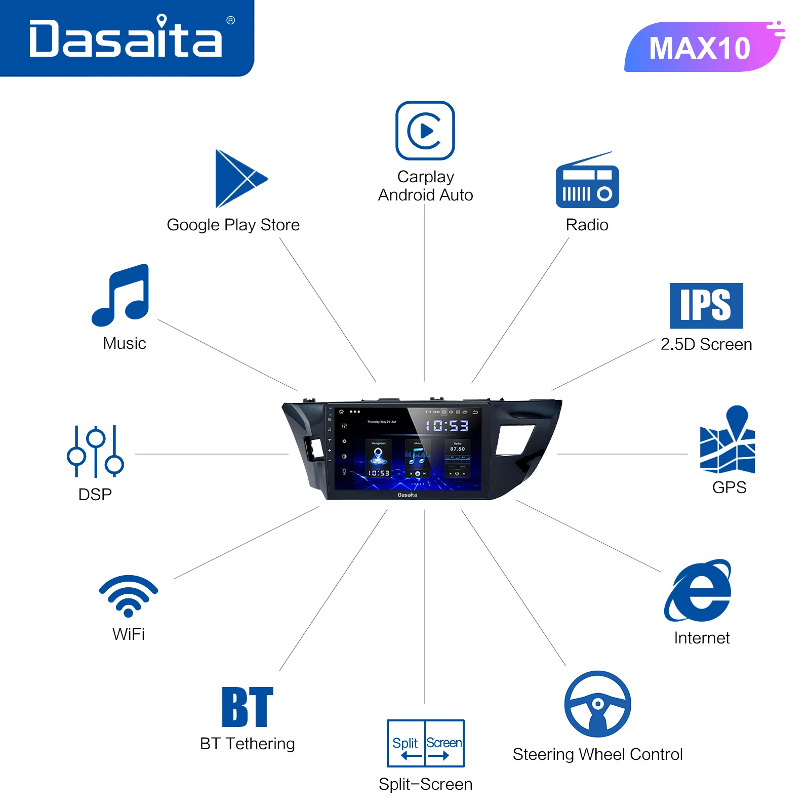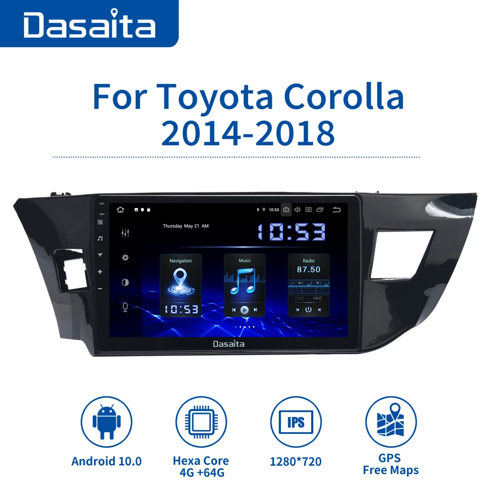 Dasaita Автомобильный мультимедийный Android 10,0 для Toyota Corolla 2014 2015 2016 Carplay сенсорный экран GPS навигация радио