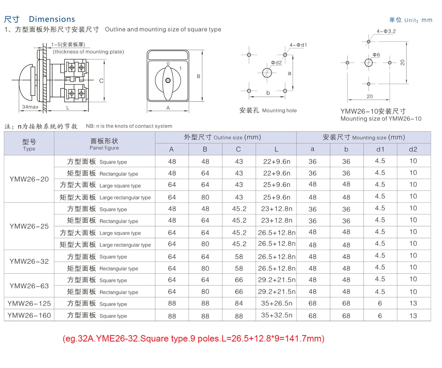 YMW26-209 кулачковый переключатель, универсальный переключатель 20A...