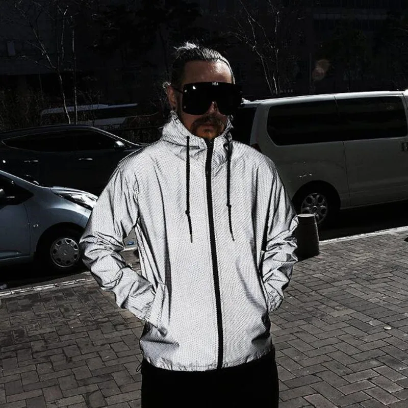 Мужская Светоотражающая ветровка с капюшоном, в стиле хип-хоп