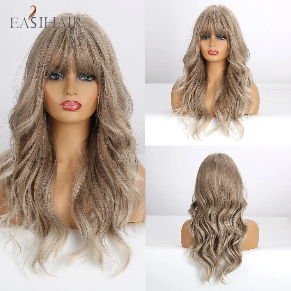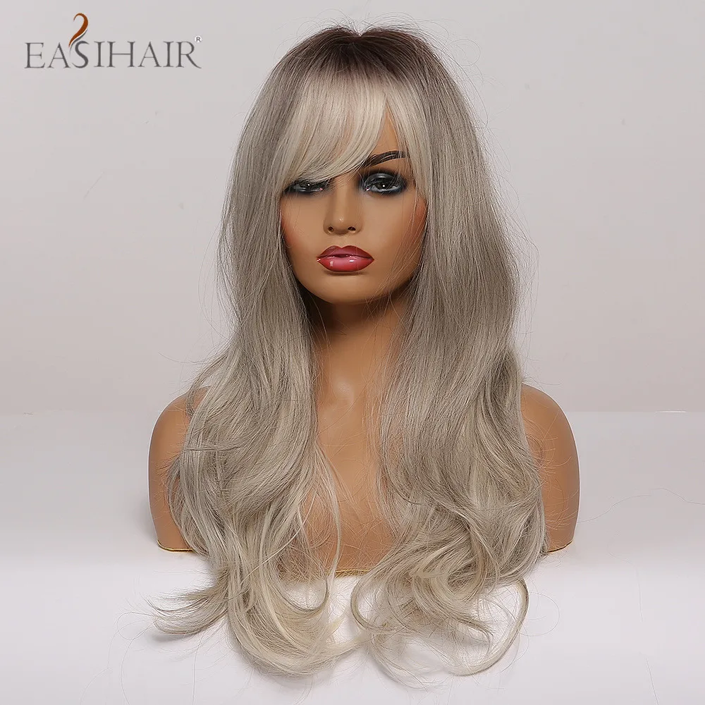 Парики Синтетические длинные волнистые с эффектом омбре, термостойкие для женщин, с боковым взрывом, для косплея, коричневые светильник лые, светлые, серебристые