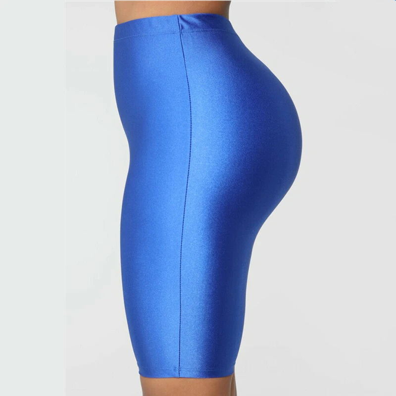 Женские компрессионные блестящие обтягивающие шорты с высокой талие...