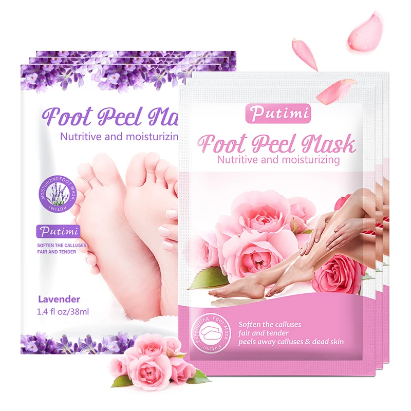 PUTIMI 2 пачки, оказывающего отшелушиващее и смягчающее действие на бледно-лиловыйрозовое отбеливающая маска для ног пилинг удаляет мертвую кожу мозоли, педикюр носки для ног, выводит токсины